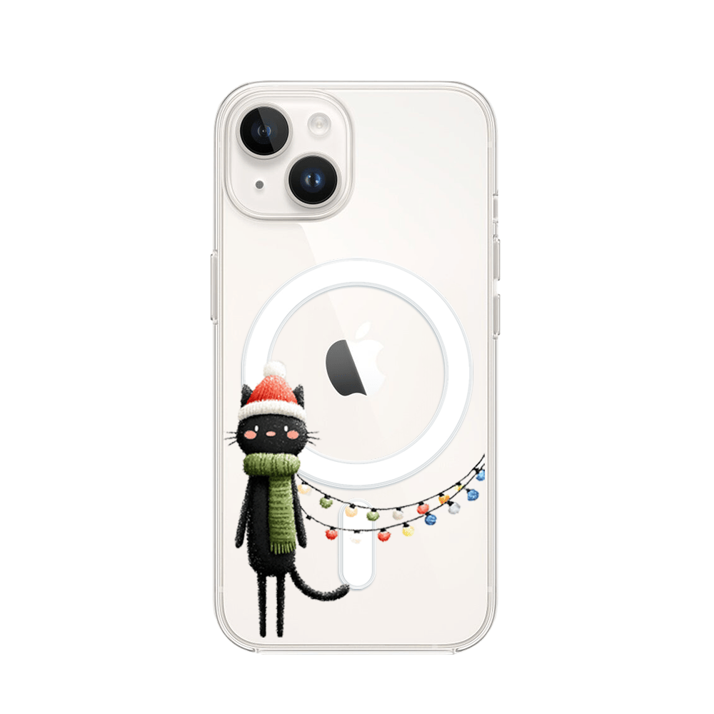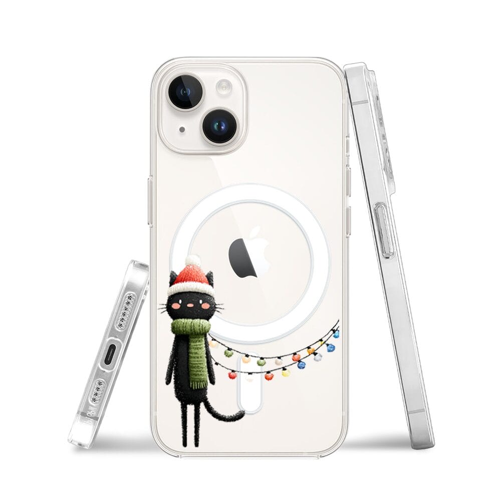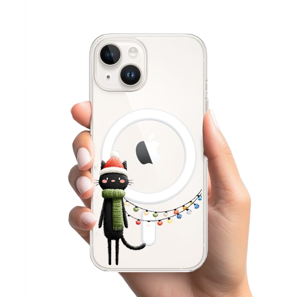 Etui do iPhone 13 z MagSafe przeźroczyste, silikonowe Flexi, Przytulne święta, Kot przebrany za elfa