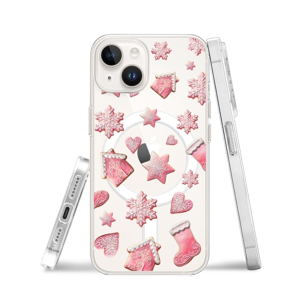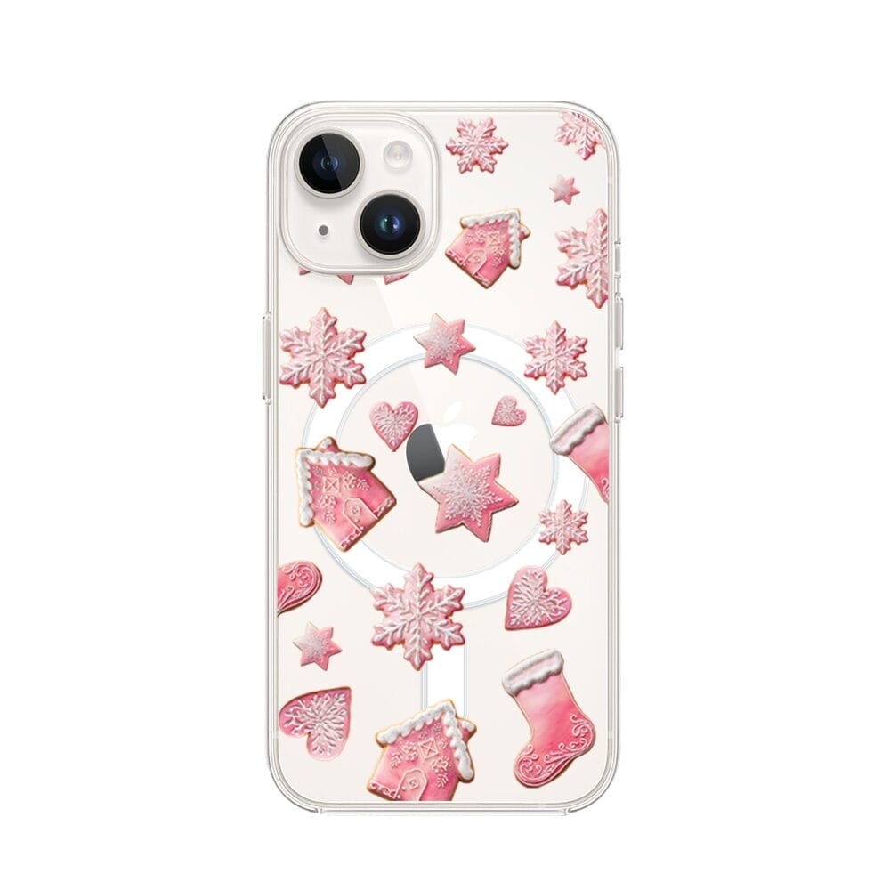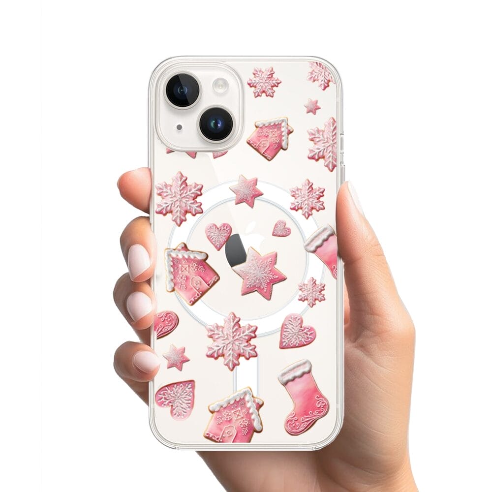 Etui do iPhone 13 z MagSafe przeźroczyste, silikonowe Flexi, Przytulne święta, Różowe pierniczki
