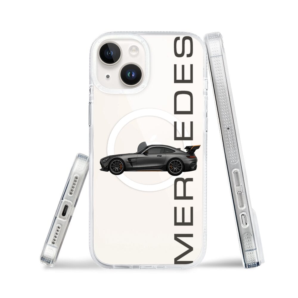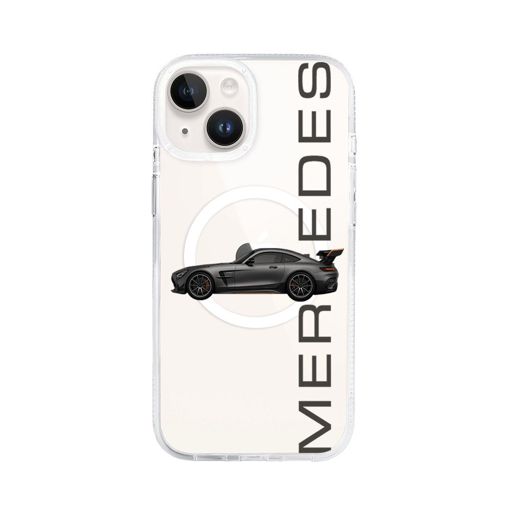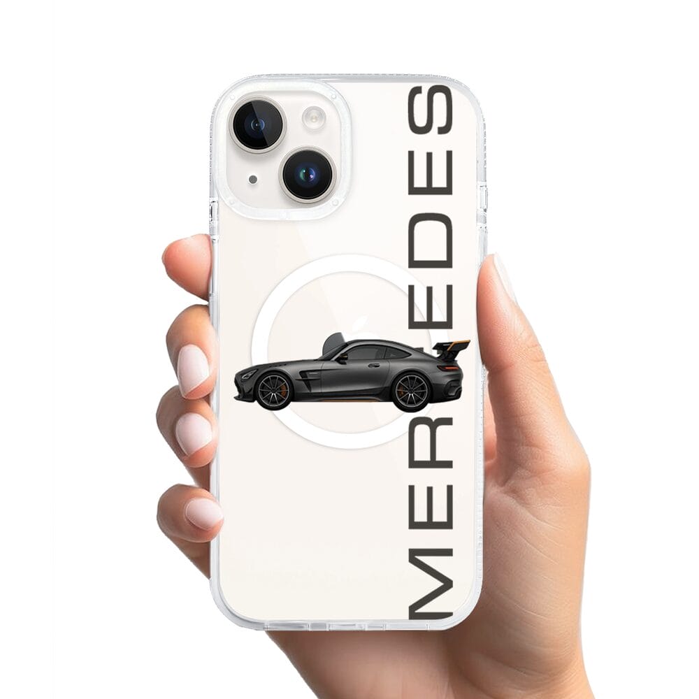 Etui do iPhone 13 z MagSafe przeźroczyste, silikonowe Flexi, Szybkie Auta, Stalowe AMG-GT