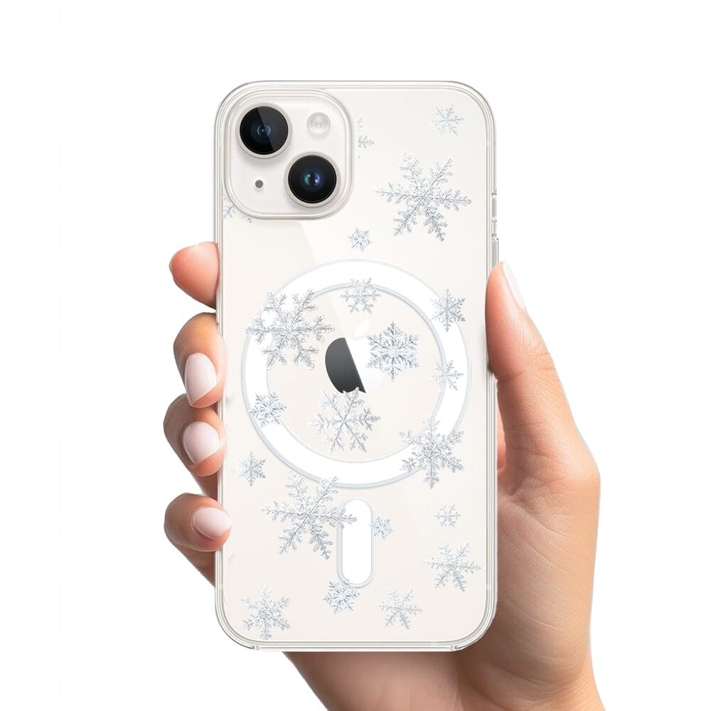 Etui do iPhone 13 z MagSafe przeźroczyste, silikonowe Flexi, Zimowa magia, Delikatne płatki śniegu