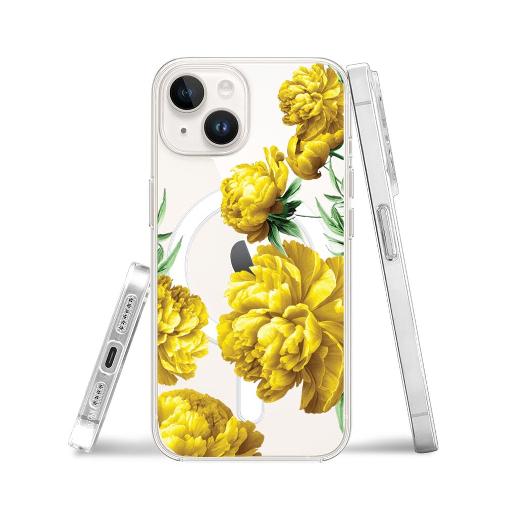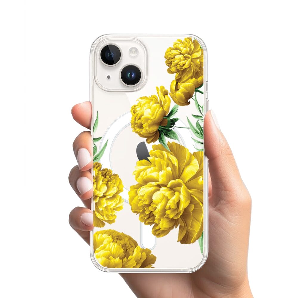 Etui do iPhone 13 z MagSafe przeźroczyste, silikonowe Flexi, żółte piwonie