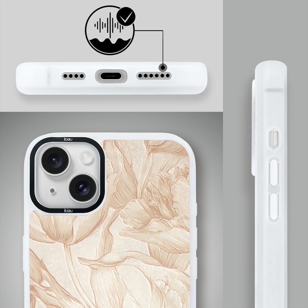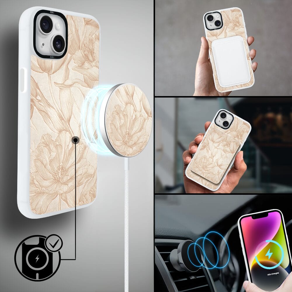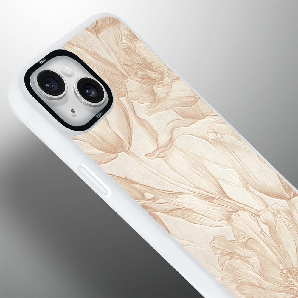 Etui do iPhone 14 IBIZU DropGuard Matt z MagSafe, Relief Garden, Botaniczny biskwit, białe