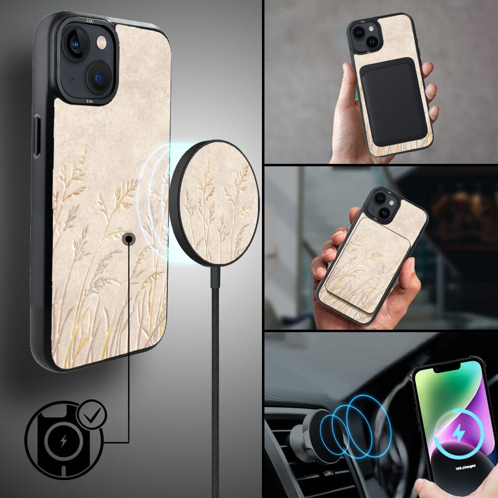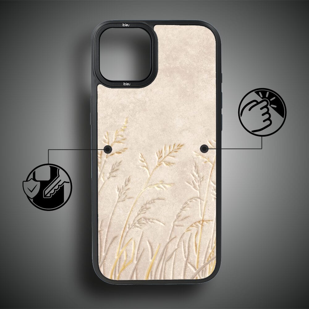 Etui do iPhone 14 IBIZU DropGuard Matt z MagSafe, Relief Garden, Kłosy z piaskowca
