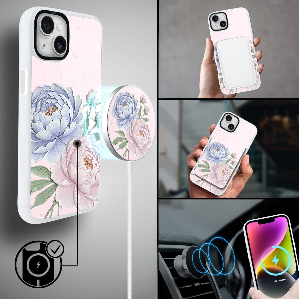Etui do iPhone 14 IBIZU DropGuard Matt z MagSafe, Relief Garden, Piwoniowy róż, białe