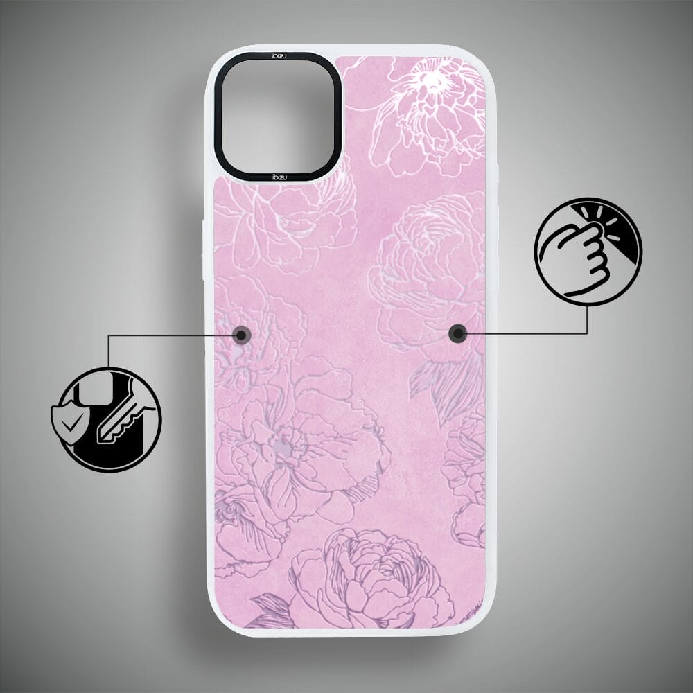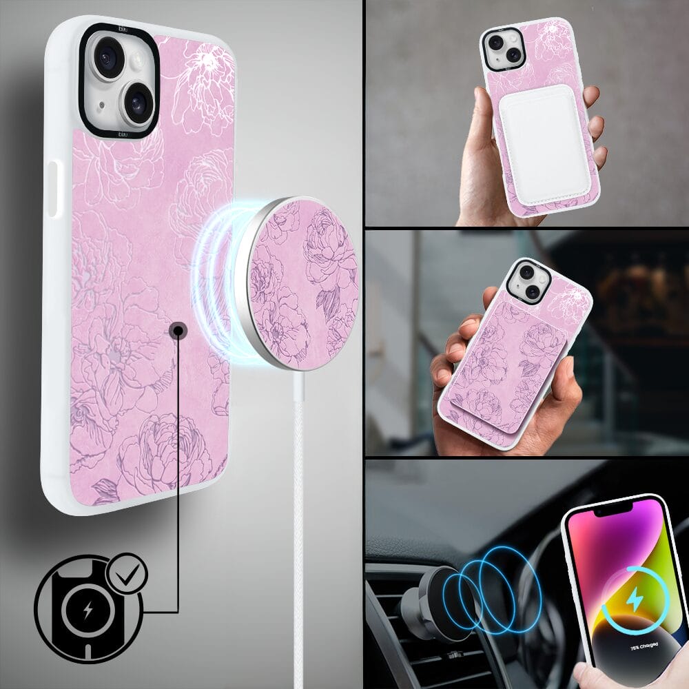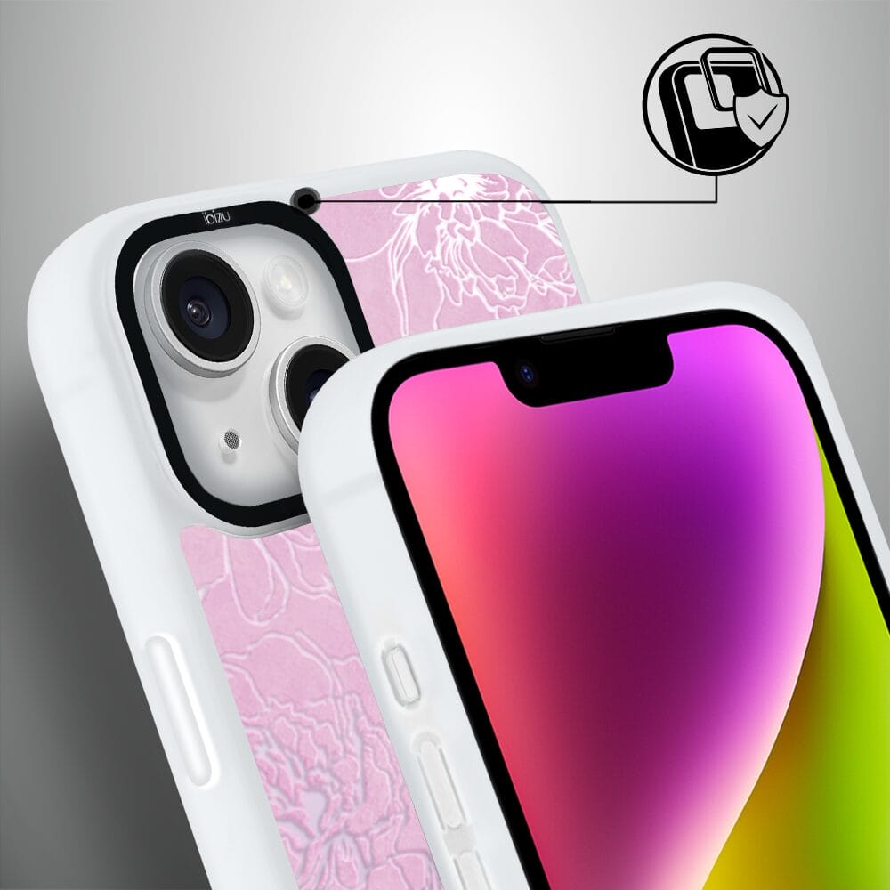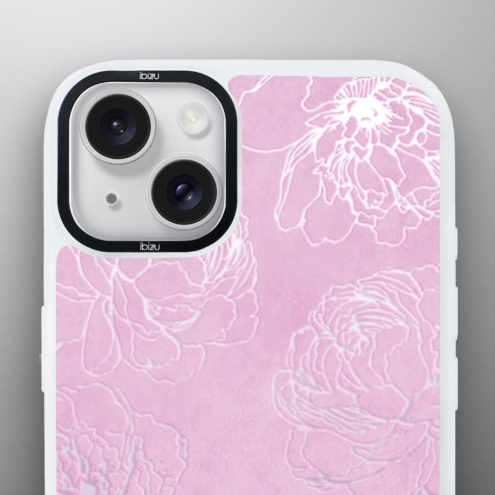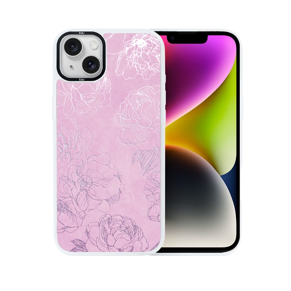 Etui do iPhone 14 IBIZU DropGuard Matt z MagSafe, Relief Garden, Różowe piwonie, białe