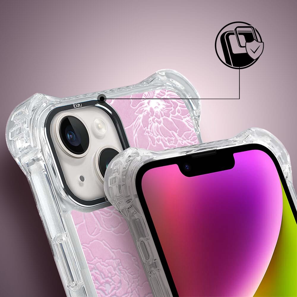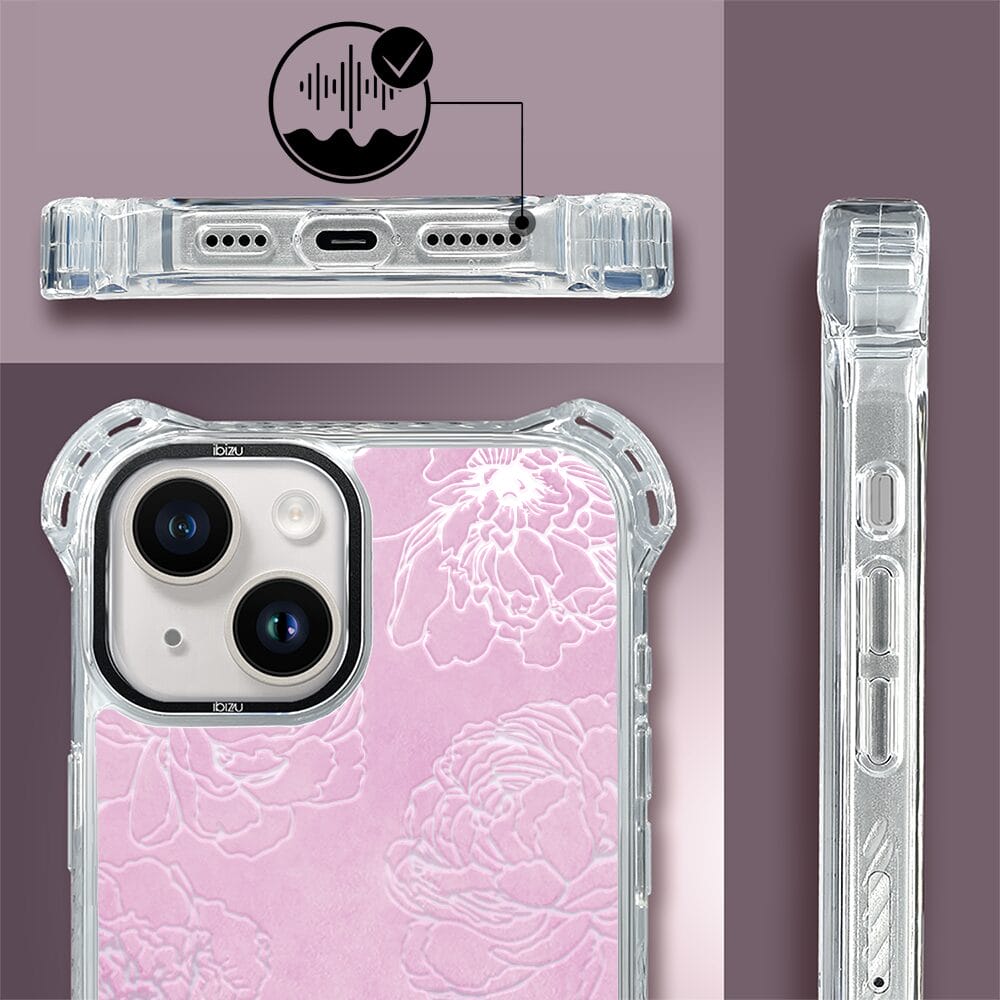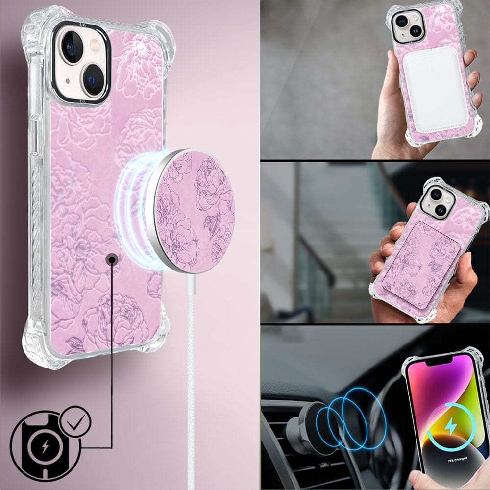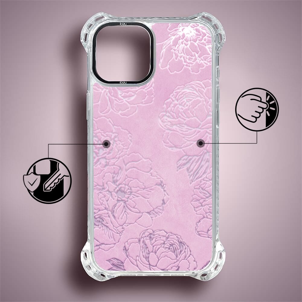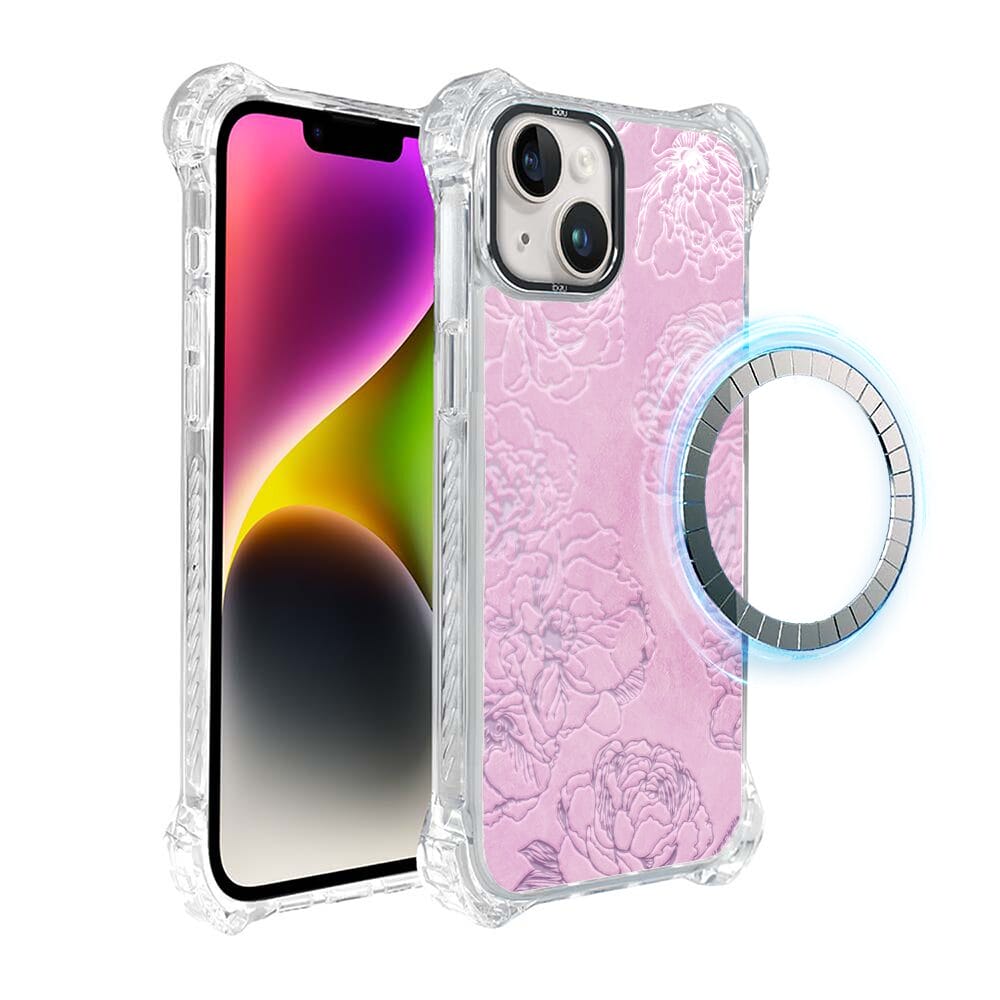Etui do iPhone 14 IBIZU DropGuard Ultra z MagSafe, Relief Garden, Różowe piwonie
