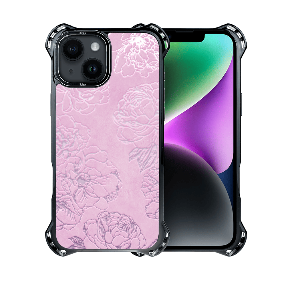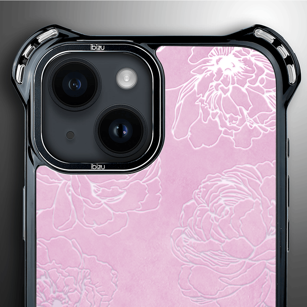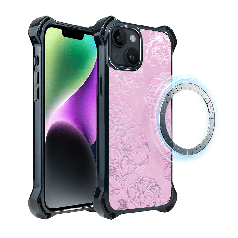 Etui do iPhone 14 IBIZU DropGuard Ultra z MagSafe, Relief Garden, Różowe piwonie