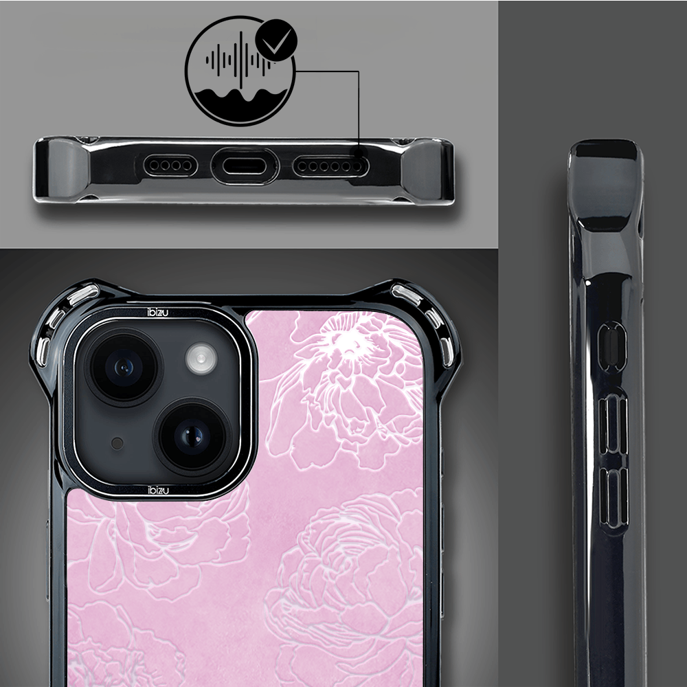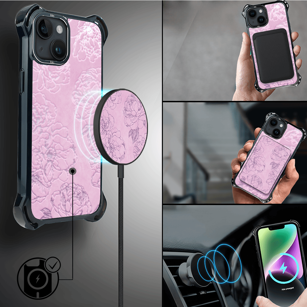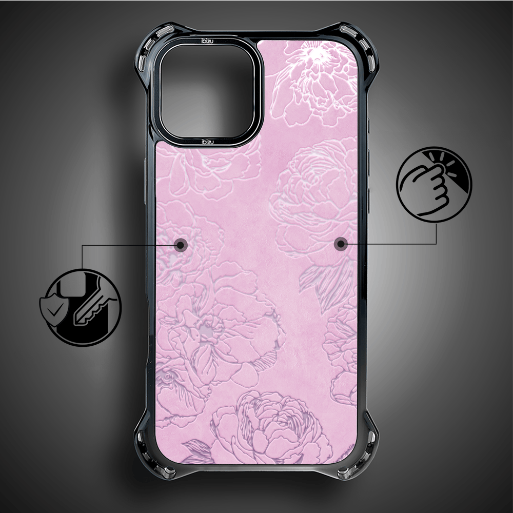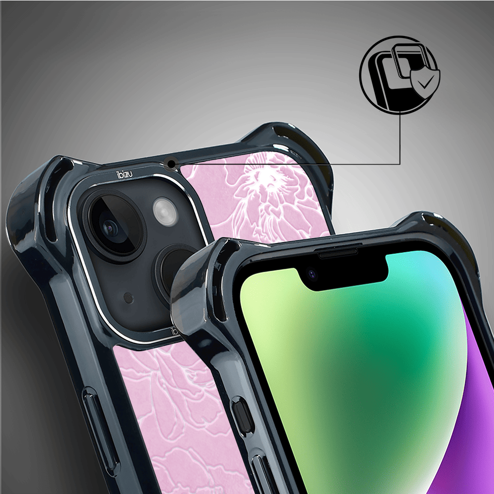 Etui do iPhone 14 IBIZU DropGuard Ultra z MagSafe, Relief Garden, Różowe piwonie