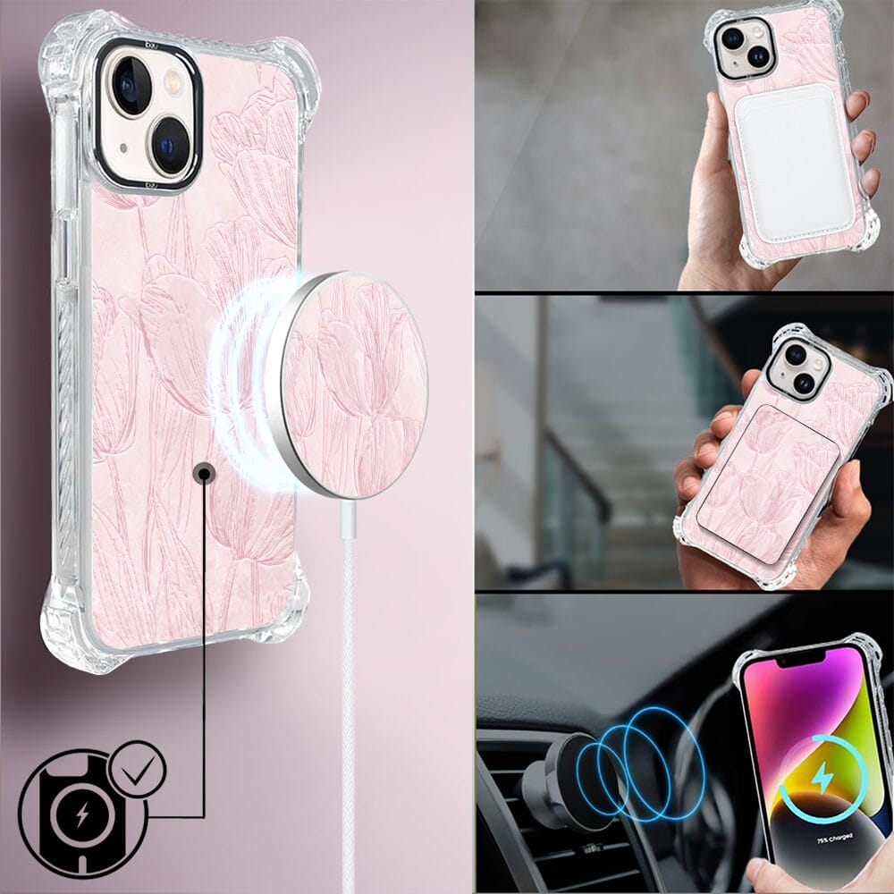 Etui do iPhone 14 IBIZU DropGuard Ultra z MagSafe, Relief Garden, Tulipanowy fresk