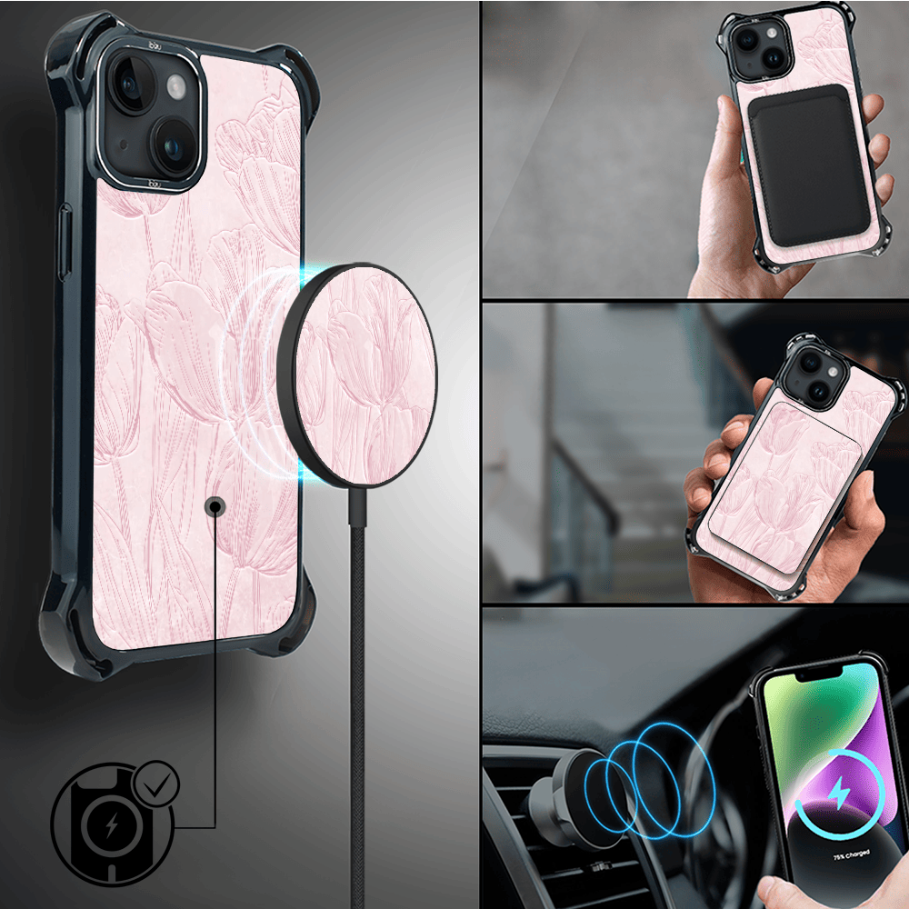 Etui do iPhone 14 IBIZU DropGuard Ultra z MagSafe, Relief Garden, Tulipanowy fresk