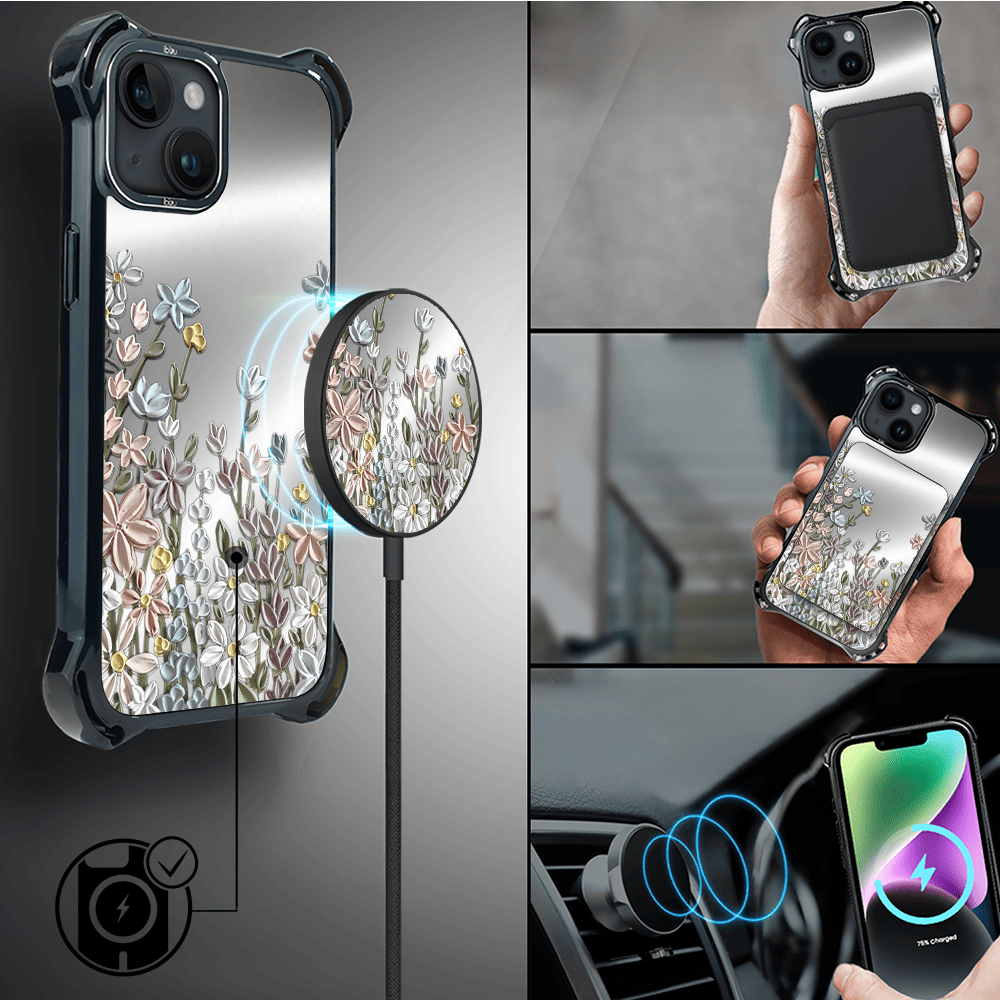 Etui do iPhone 14 IBIZU DropGuard Ultra z MagSafe, Relief Garden, Wiosenna łąka
