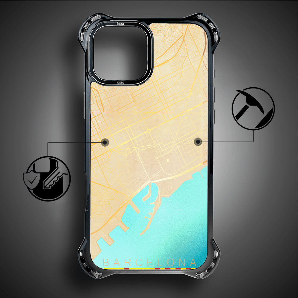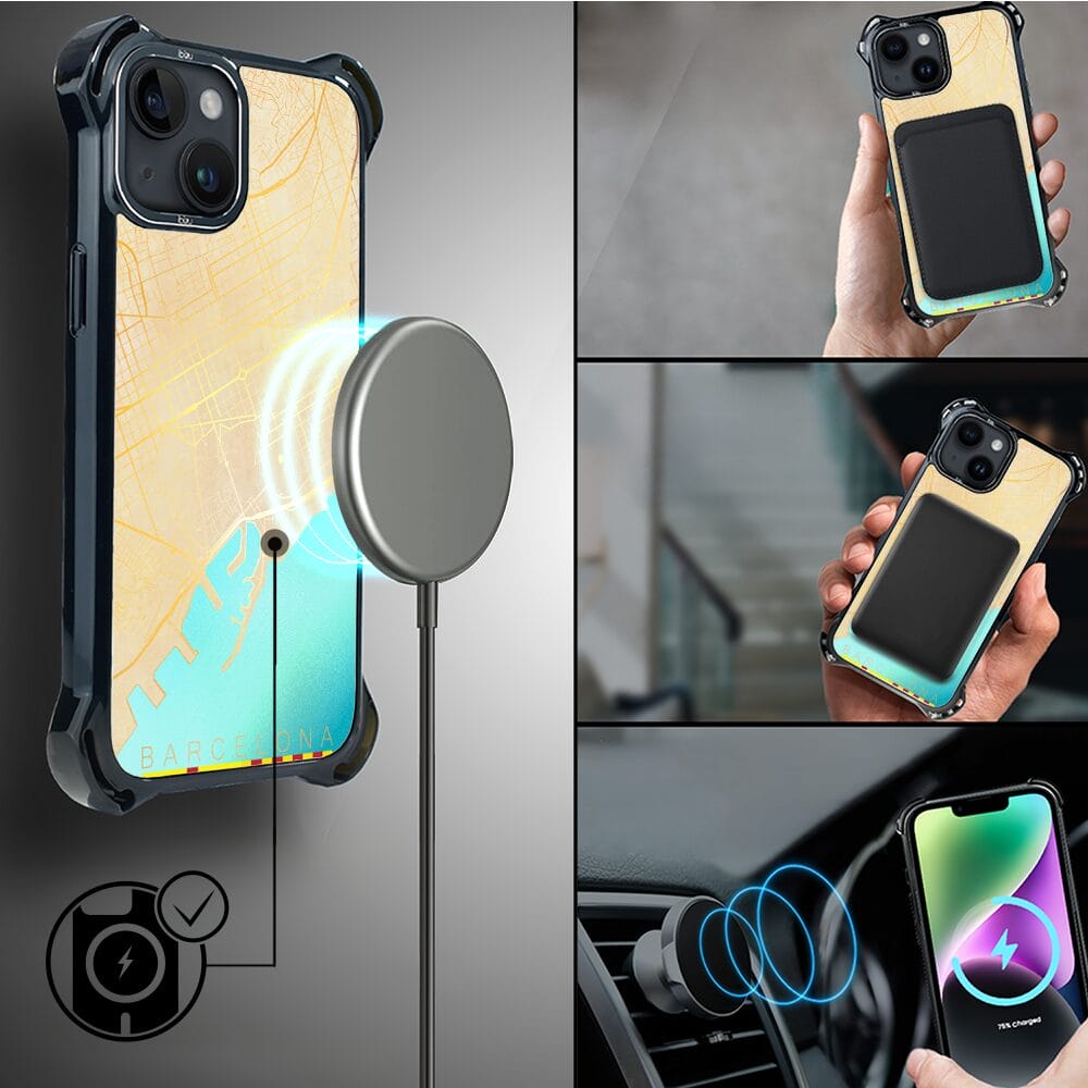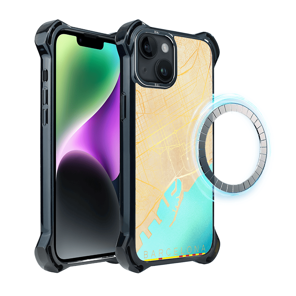 Etui do iPhone 14 IBIZU DropGuard Ultra z MagSafe,mapy świata, Barcelona