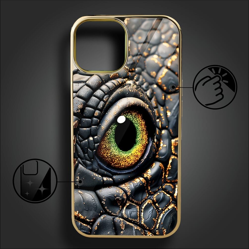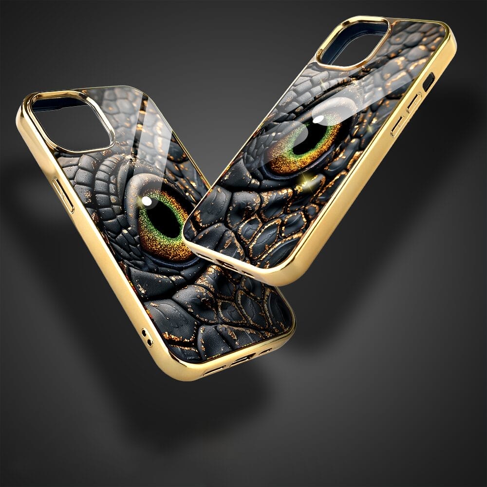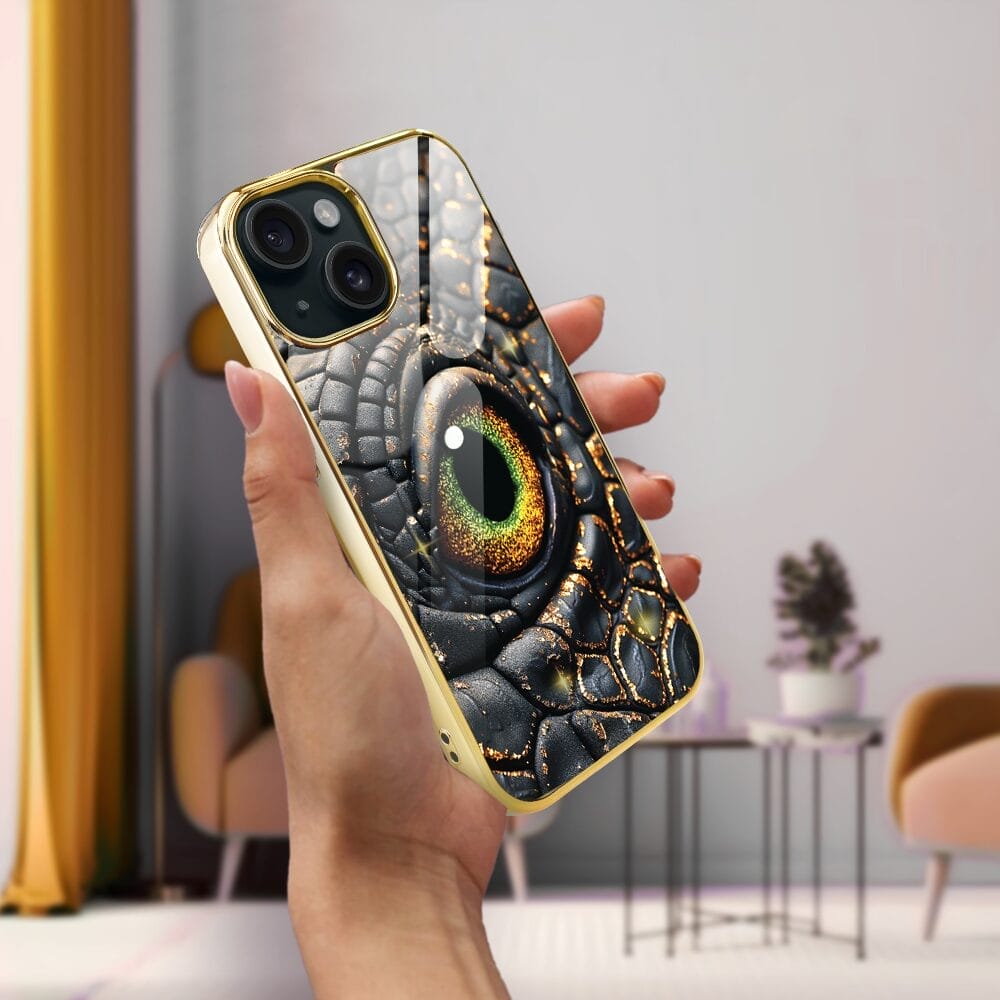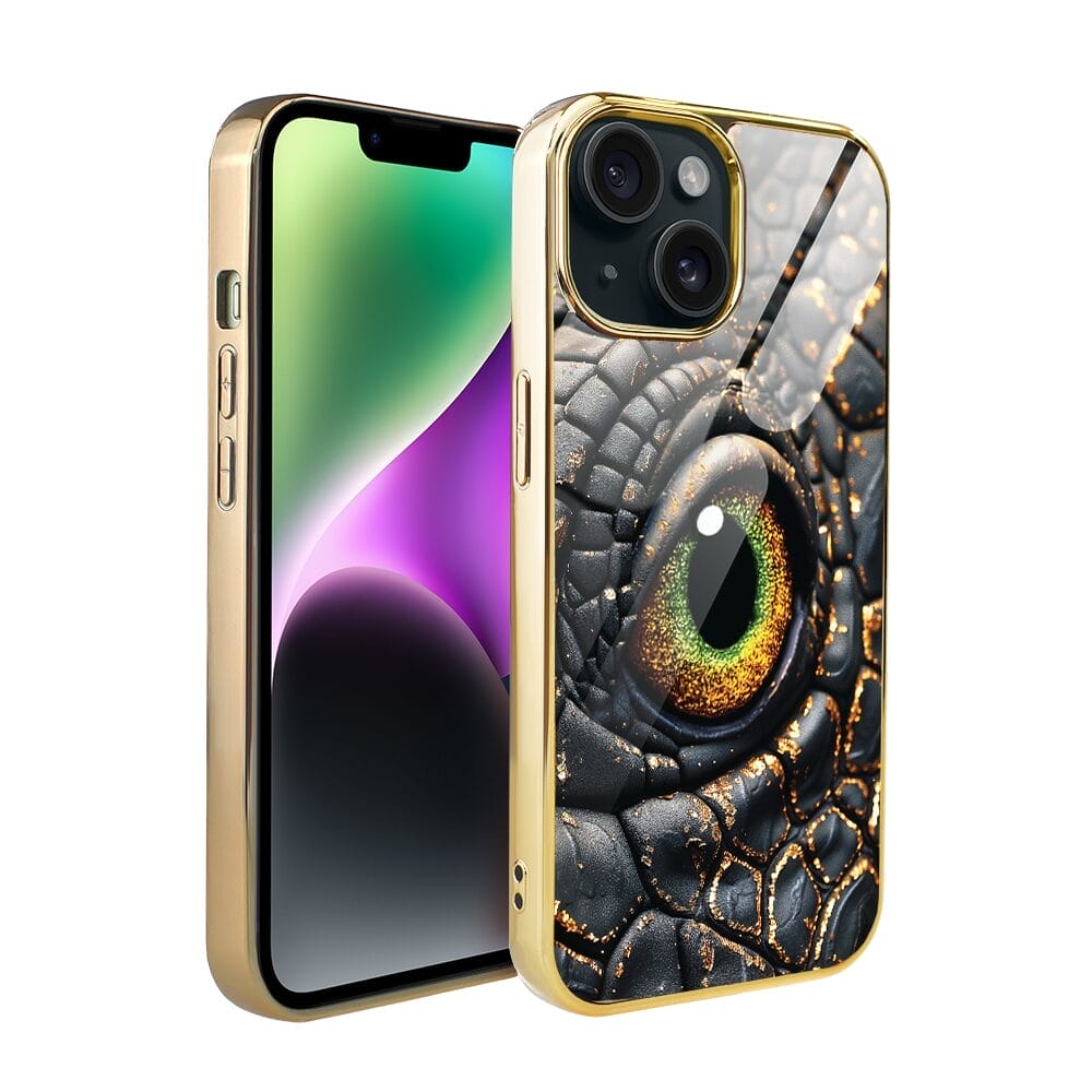 Etui do iPhone 14 IBIZU Elite Glass, szklany tył, Magia Azji amber dragon, złote