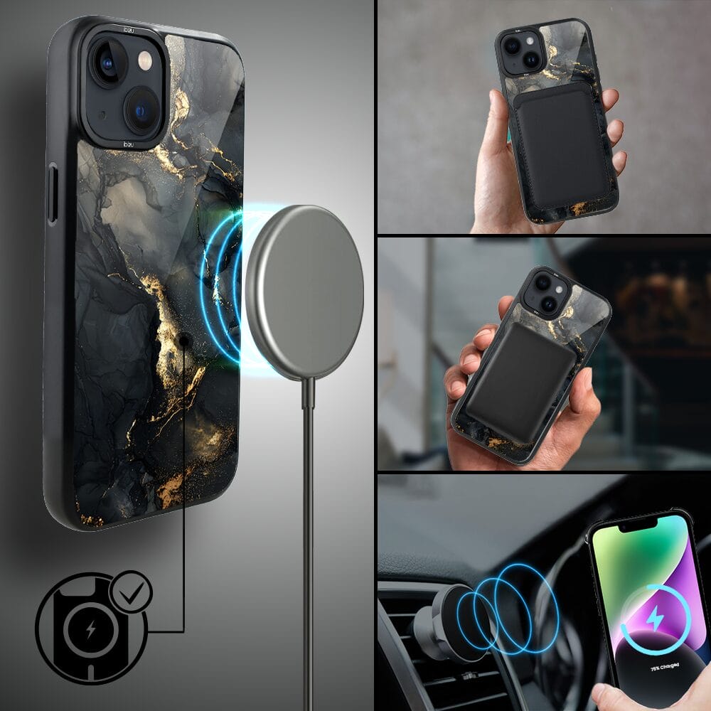Etui do iPhone 14 Plus IBIZU DropGuard Matt z MagSafe, Ethereal Essence, Czarny diament ze złotem