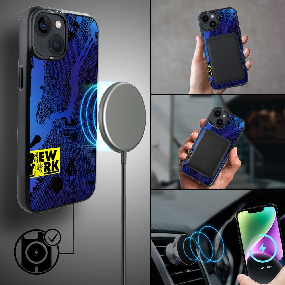 Etui do iPhone 14 Plus IBIZU DropGuard Matt z MagSafe, Mapy Świata, New York