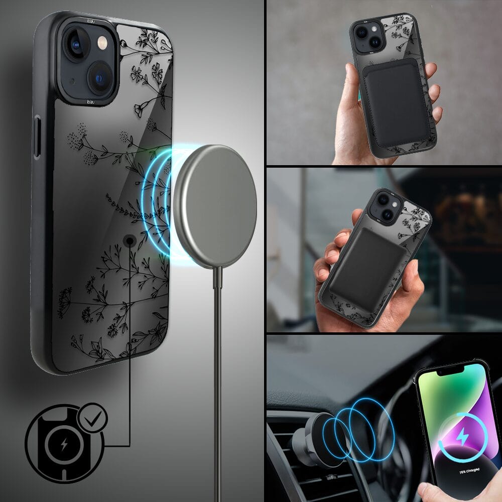 Etui do iPhone 14 Plus IBIZU DropGuard Matt z MagSafe, Midnight, Dotyk kwiatów