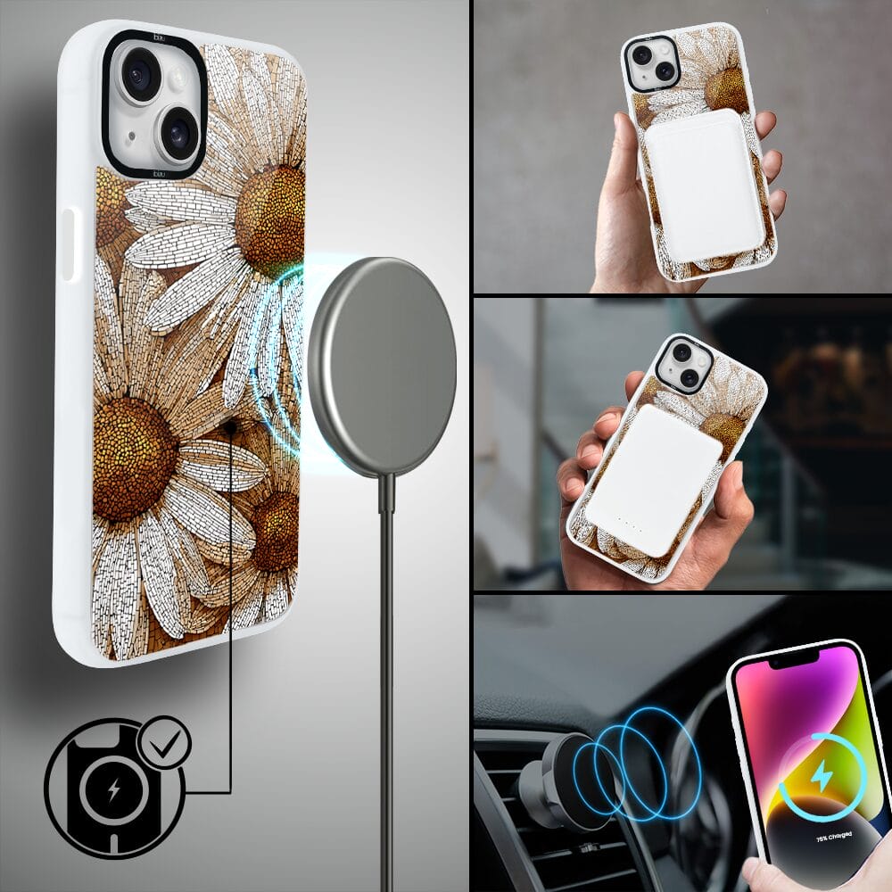 Etui do iPhone 14 Plus IBIZU DropGuard Matt z MagSafe, Modern Classics, Mozaika rumianków
