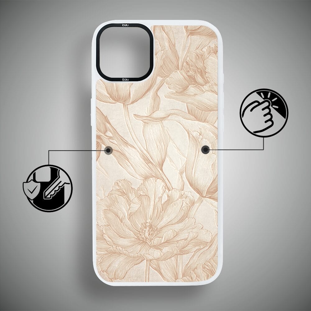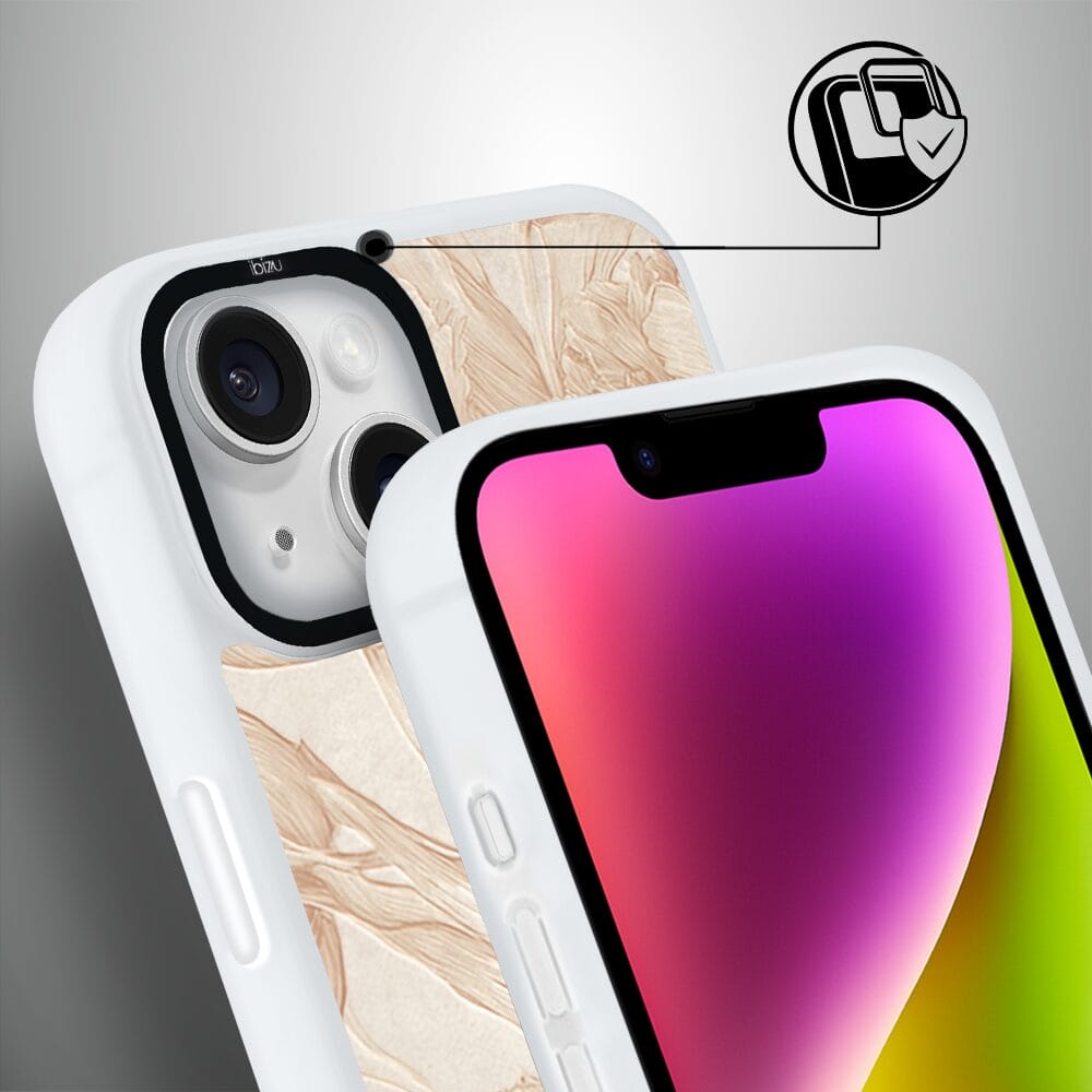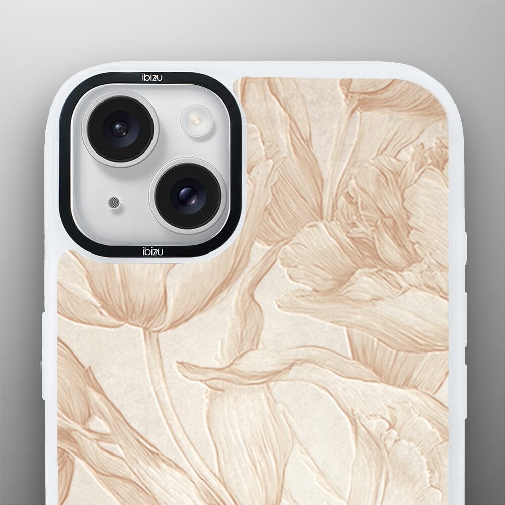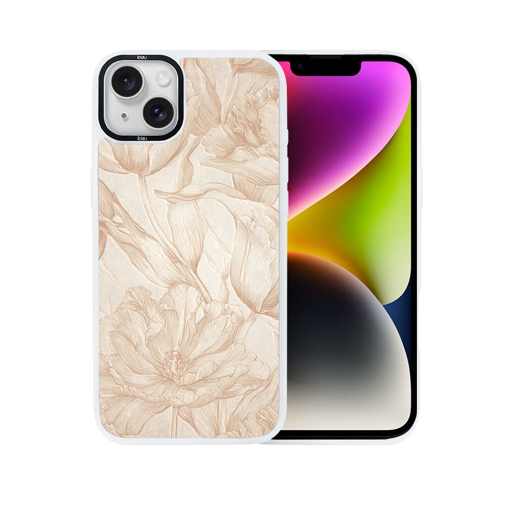 Etui do iPhone 14 Plus IBIZU DropGuard Matt z MagSafe, Relief Garden, Botaniczny biskwit, białe