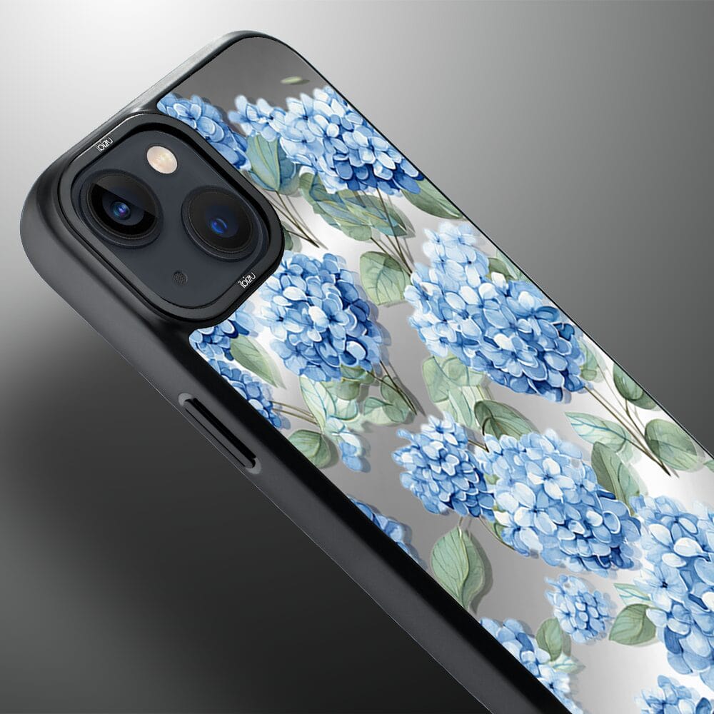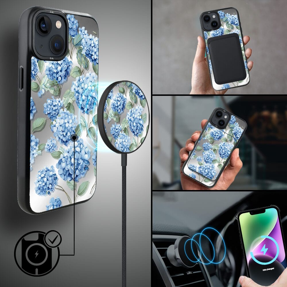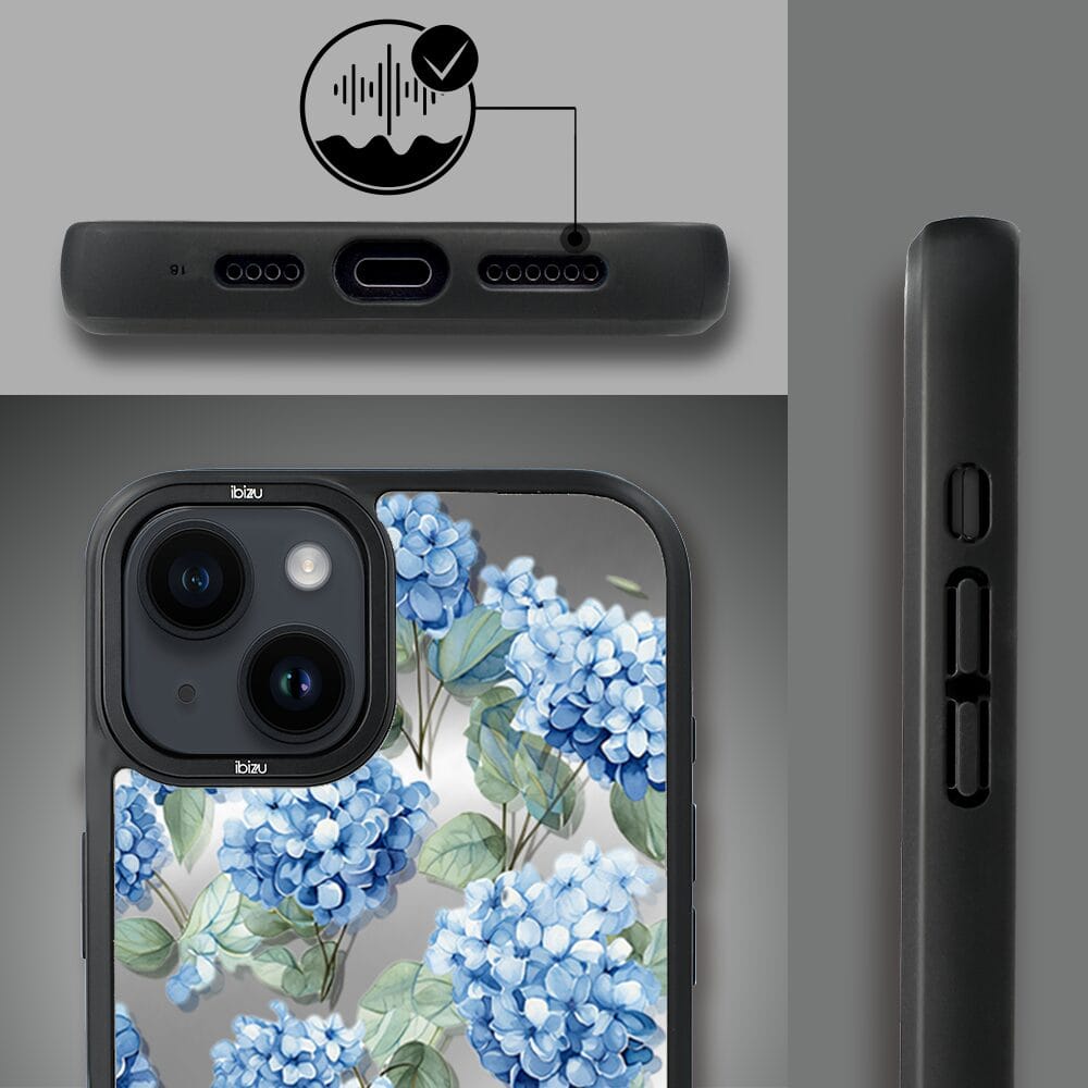 Etui do iPhone 14 Plus IBIZU DropGuard Matt z MagSafe, Relief Garden, Szafirowa hortensja