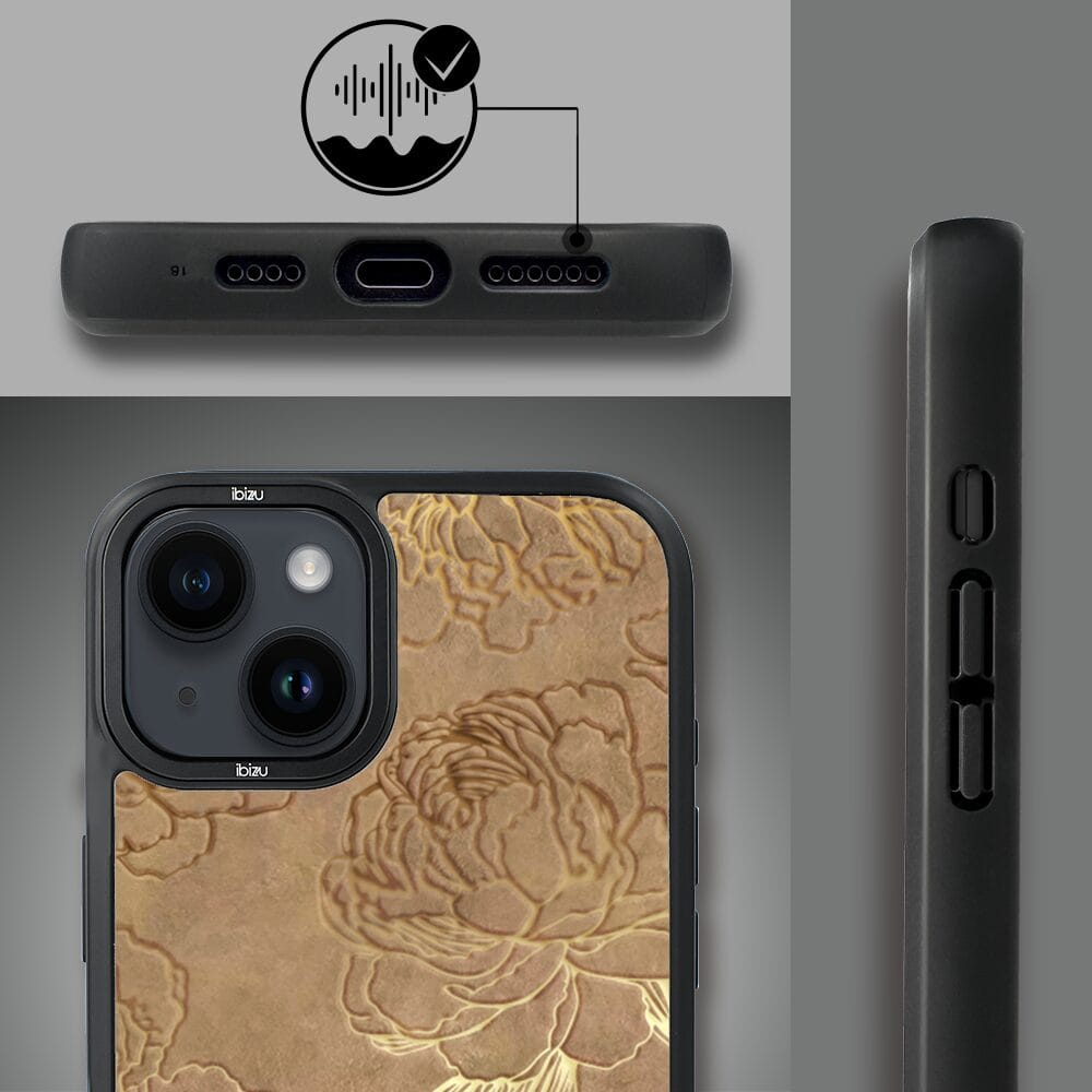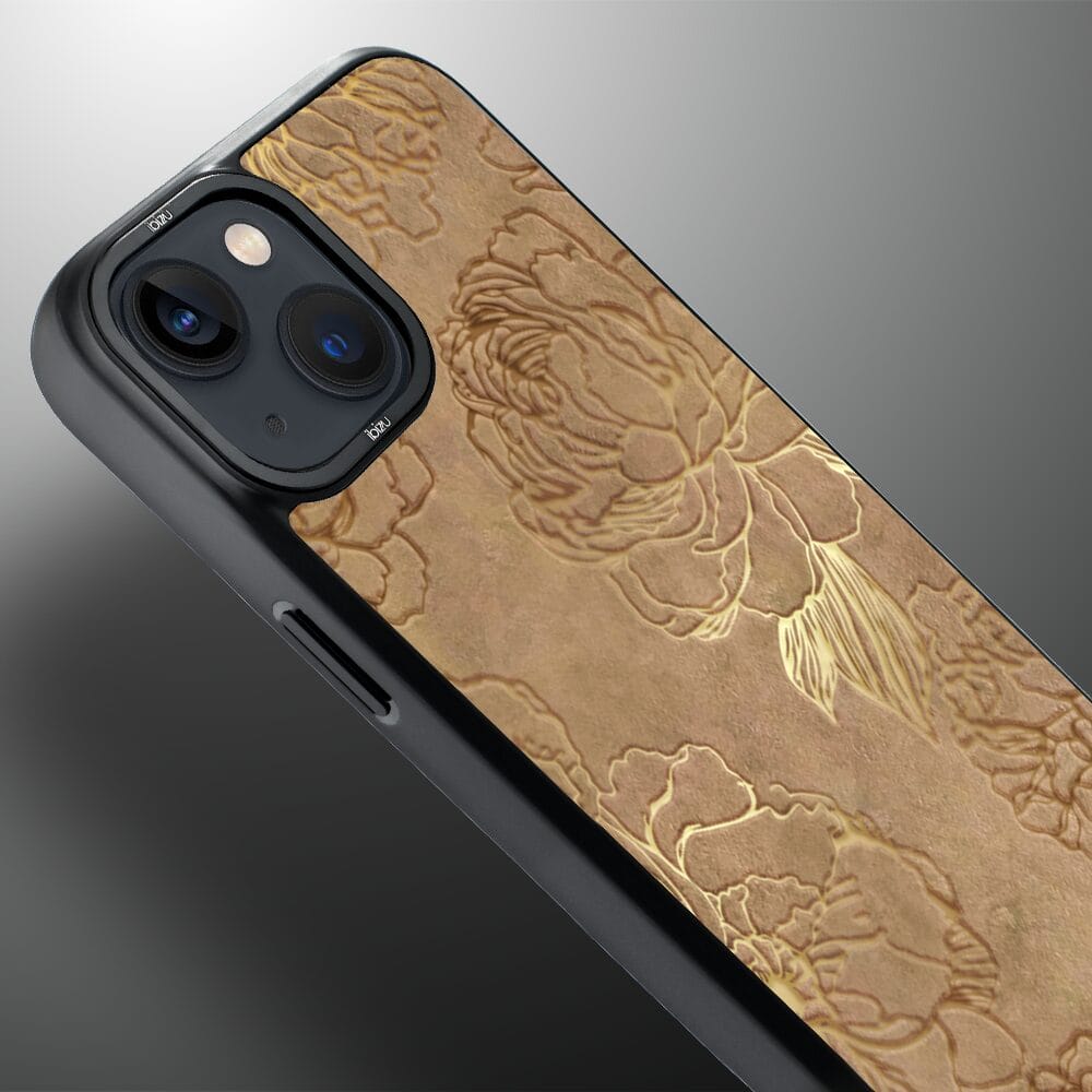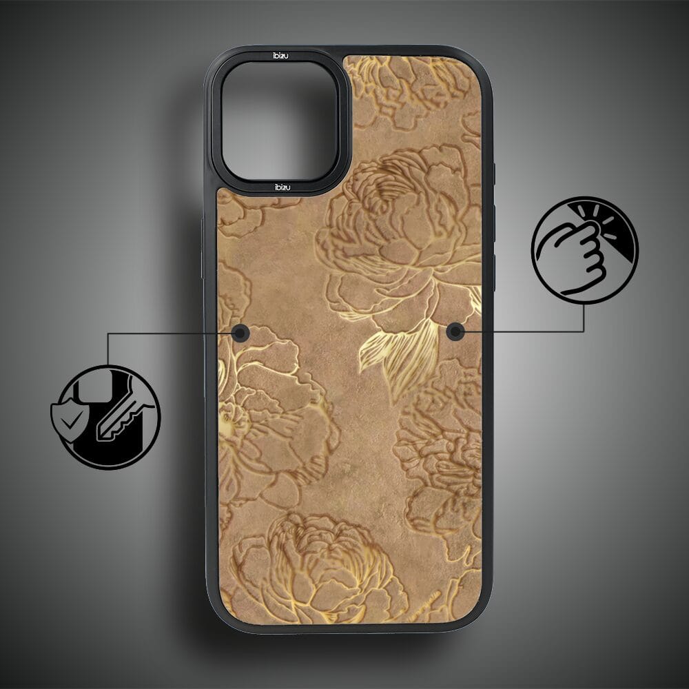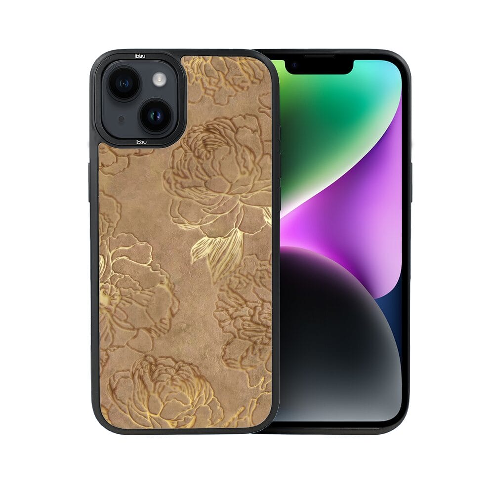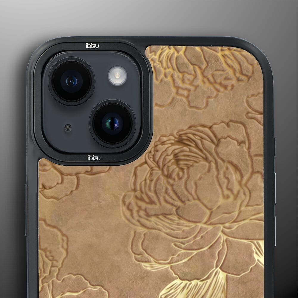 Etui do iPhone 14 Plus IBIZU DropGuard Matt z MagSafe, Relief Garden, Złote piwonie