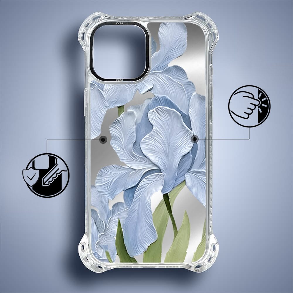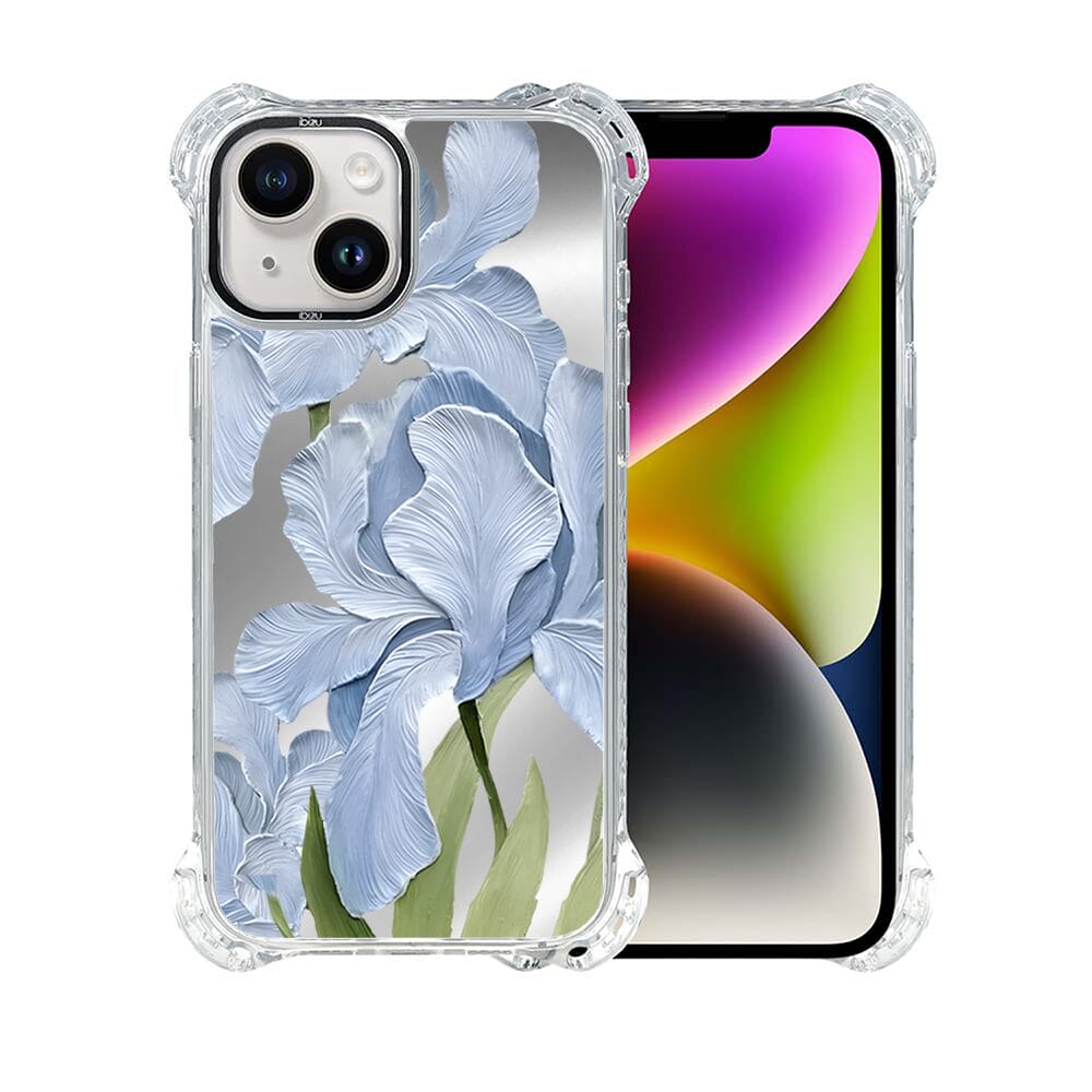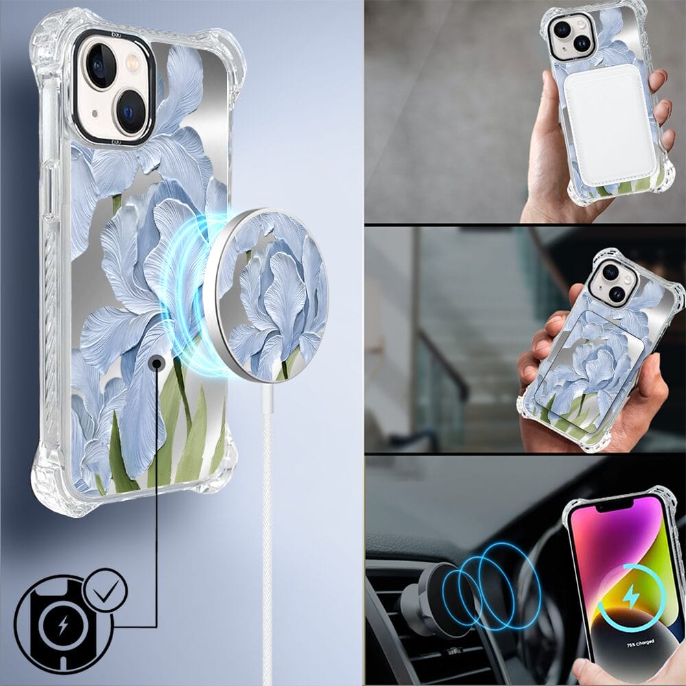 Etui do iPhone 14 Plus IBIZU DropGuard Ultra z MagSafe, Relief Garden, Błękitny irys