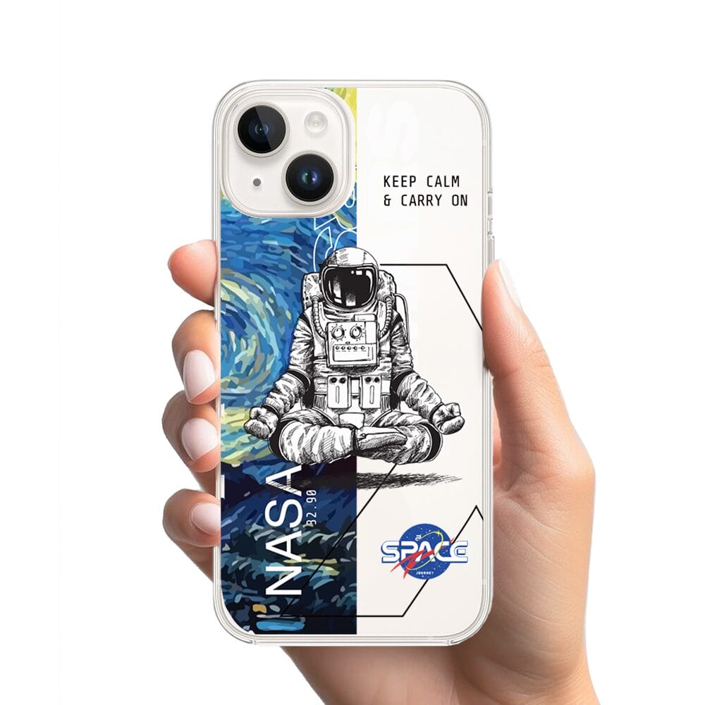 Etui do iPhone 14 Plus przeźroczyste, silikonowe Flexi, Keep Calm in Cosmos