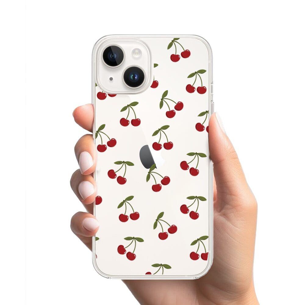 Etui do iPhone 14 Plus przeźroczyste, silikonowe Flexi, Mini Patterns, Wiśnie