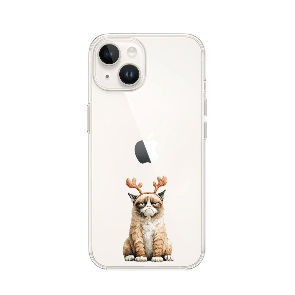 Etui do iPhone 14 Plus przeźroczyste, silikonowe Flexi, Przytulne święta, Kot który nie chciał być reniferem