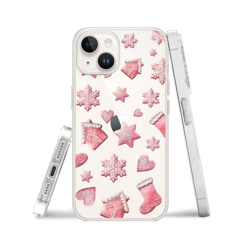 Etui do iPhone 14 Plus przeźroczyste, silikonowe Flexi, Przytulne święta, Różowe pierniczki