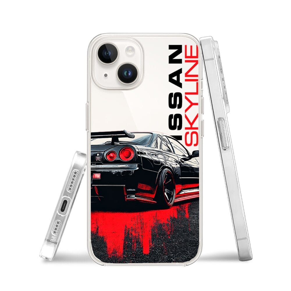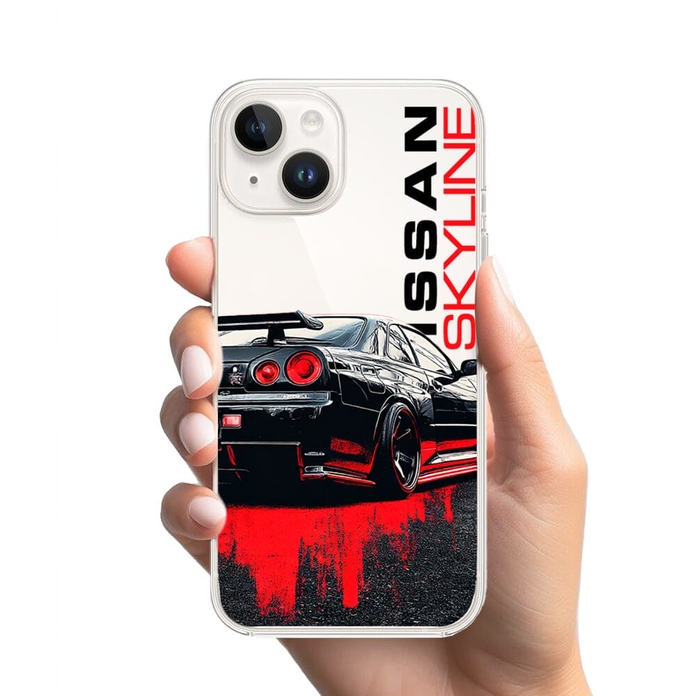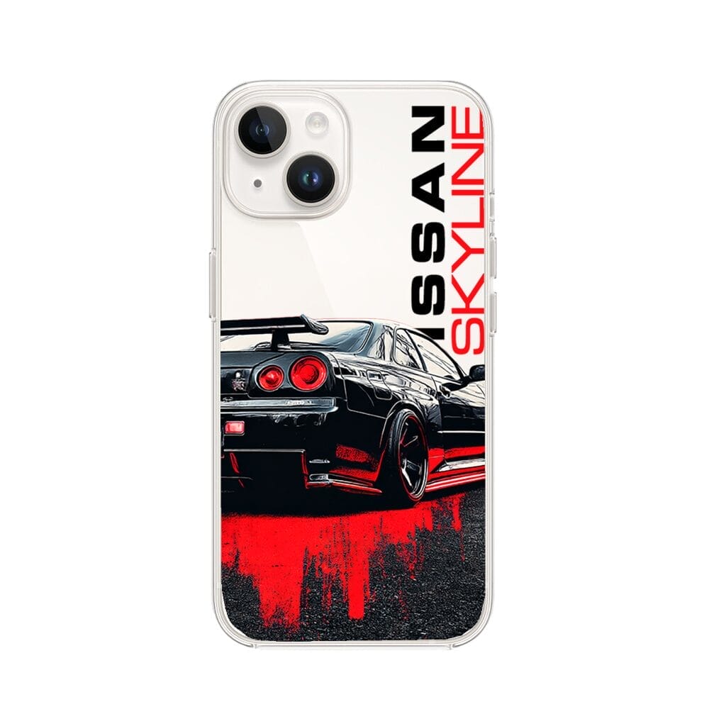 Etui do iPhone 14 Plus przeźroczyste, silikonowe Flexi, Szybkie Auta, czarny Skyline