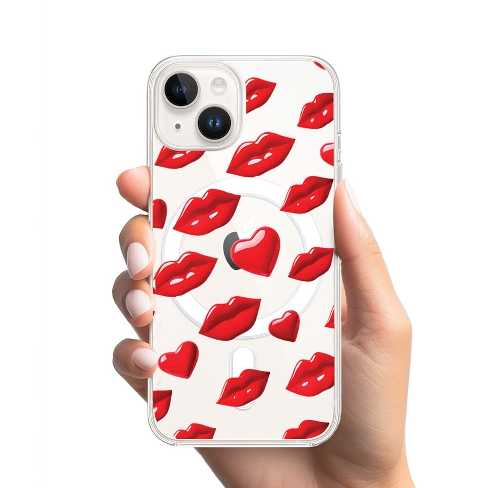 Etui do iPhone 14 Plus z MagSafe przeźroczyste, silikonowe Flexi, czerwone usta