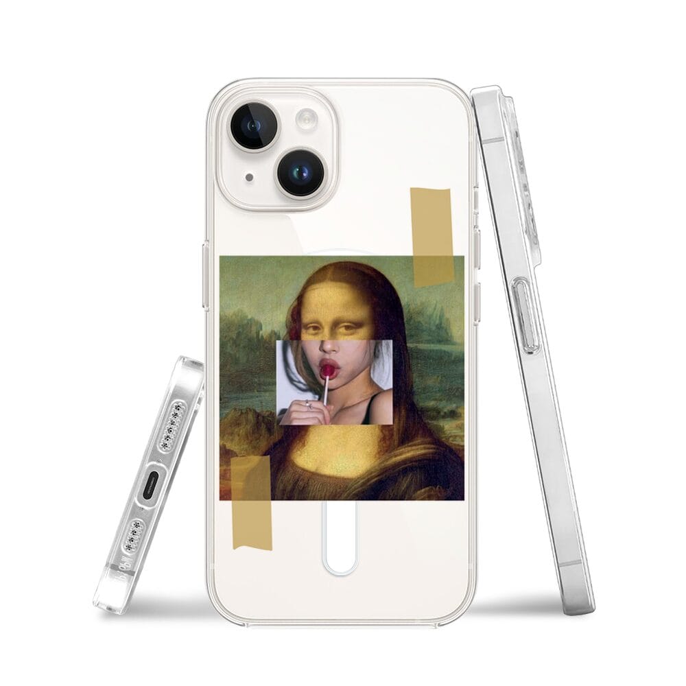 Etui do iPhone 14 Plus z MagSafe przeźroczyste, silikonowe Flexi, Mona Lisa z lizakiem
