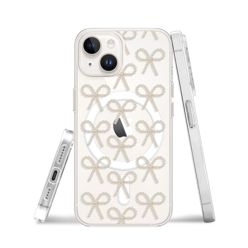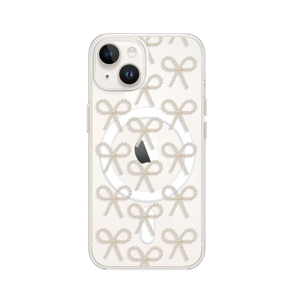 Etui do iPhone 14 Plus z MagSafe przeźroczyste, silikonowe Flexi, Przytulne święta, złote kokardki