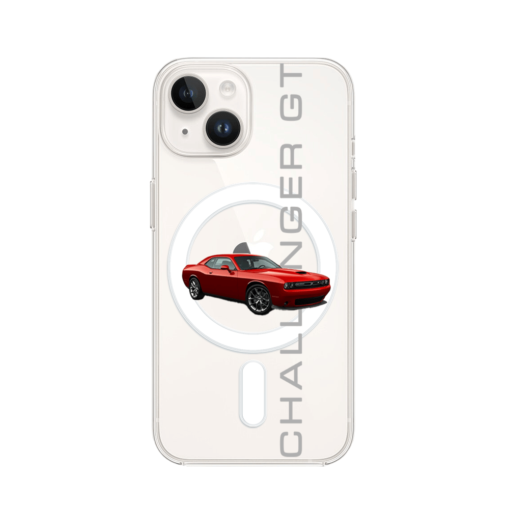Etui do iPhone 14 Plus z MagSafe przeźroczyste, silikonowe Flexi, Szybkie Auta, czerwony Challenger GT