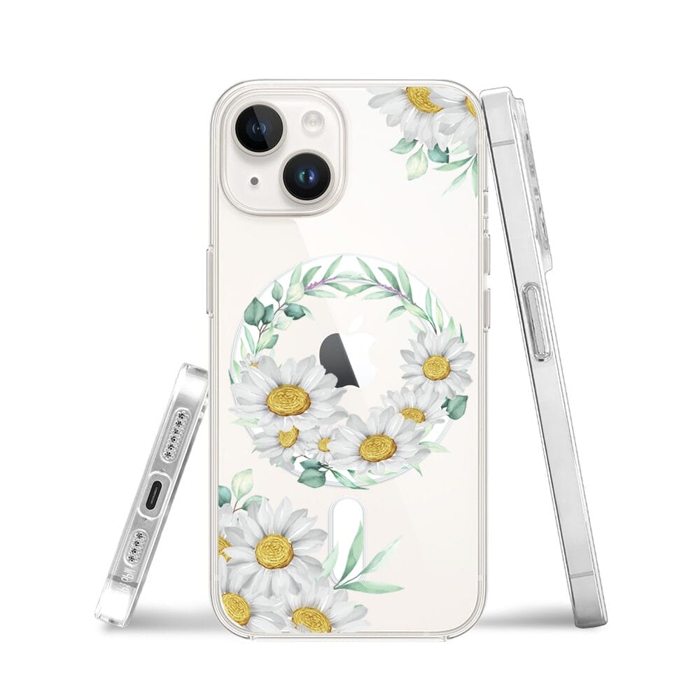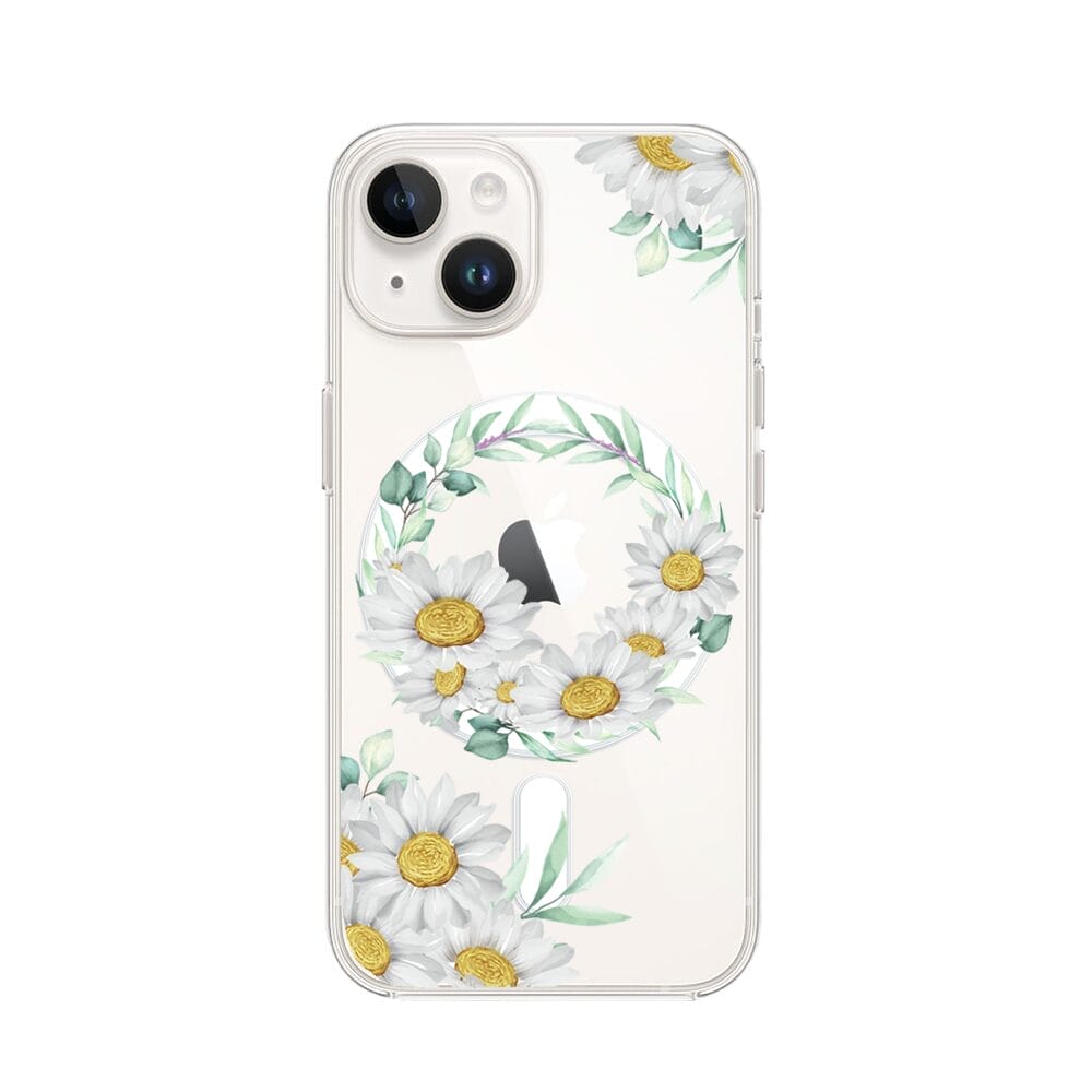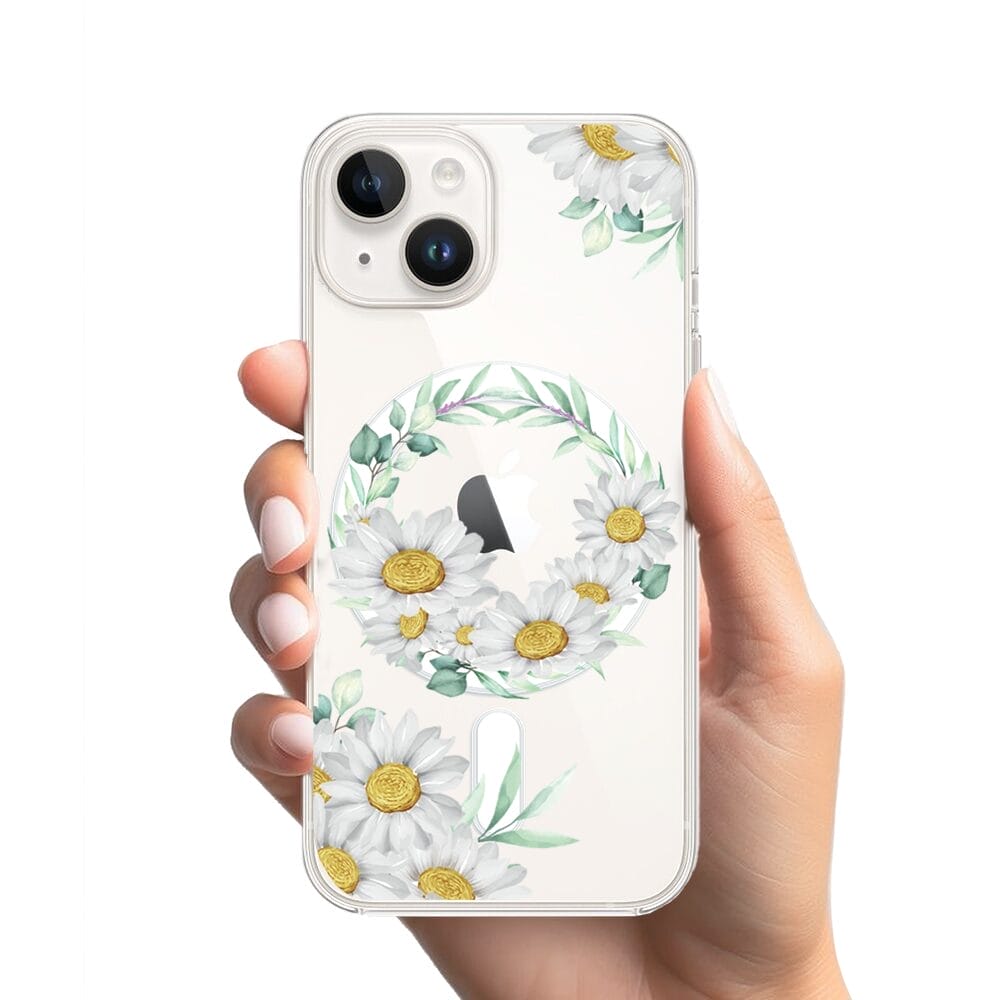 Etui do iPhone 14 Plus z MagSafe przeźroczyste, silikonowe Flexi, wianek stokrotek