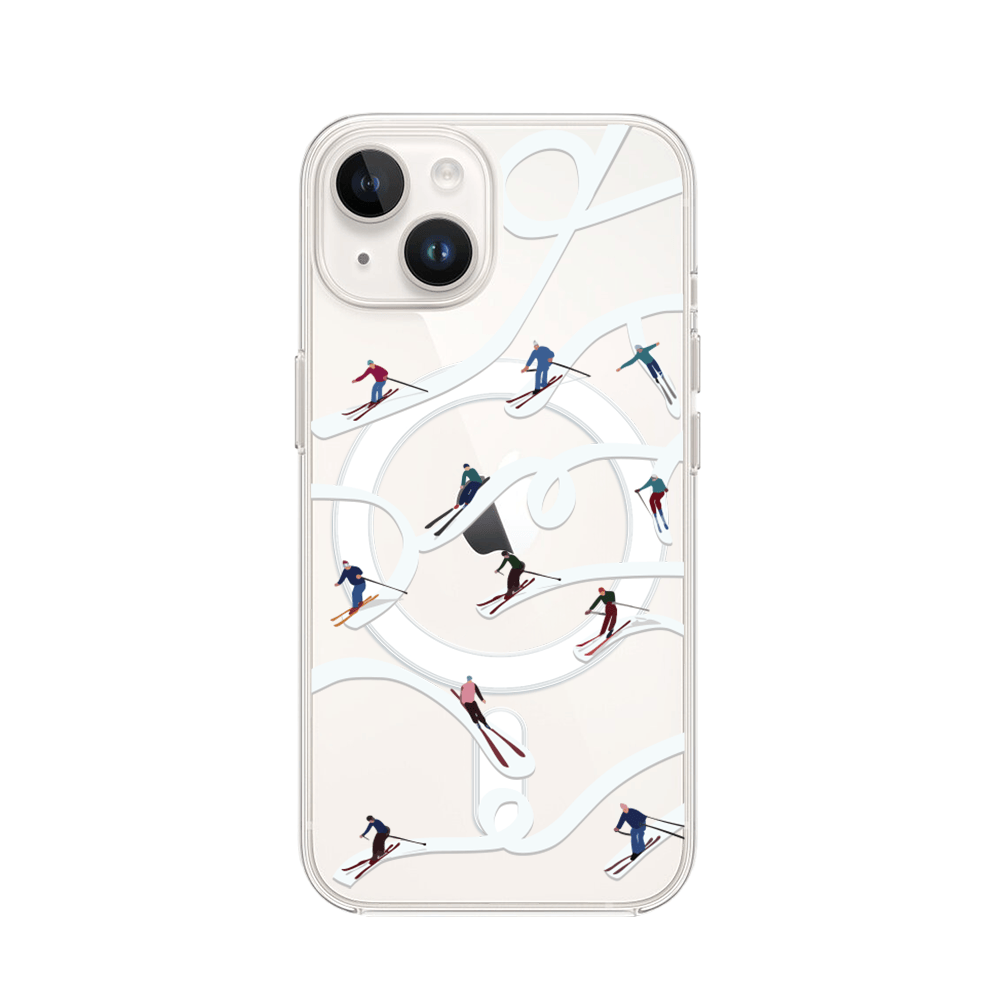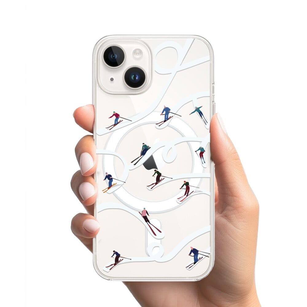 Etui do iPhone 14 Plus z MagSafe przeźroczyste, silikonowe Flexi, Zimowa magia, Narciarskie wiraże