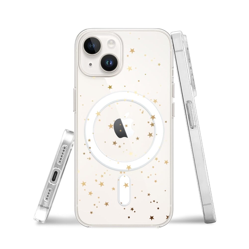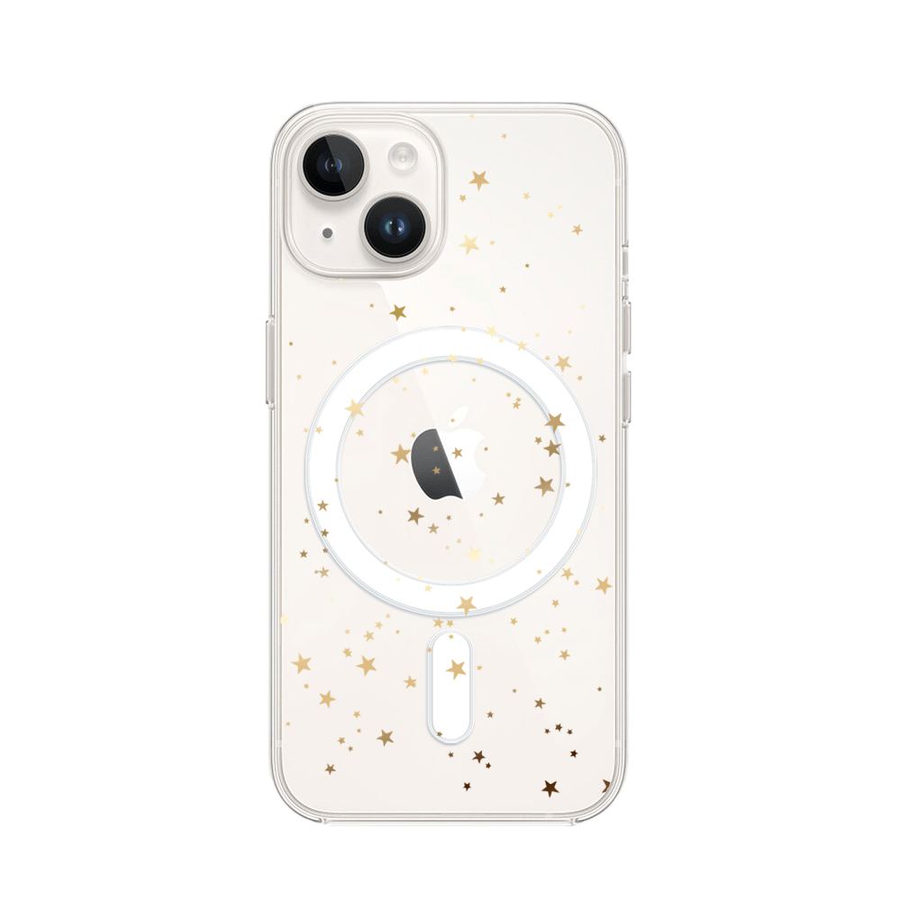 Etui do iPhone 14 Plus z MagSafe przeźroczyste, silikonowe Flexi, Zimowa magia, Złote gwiazdki