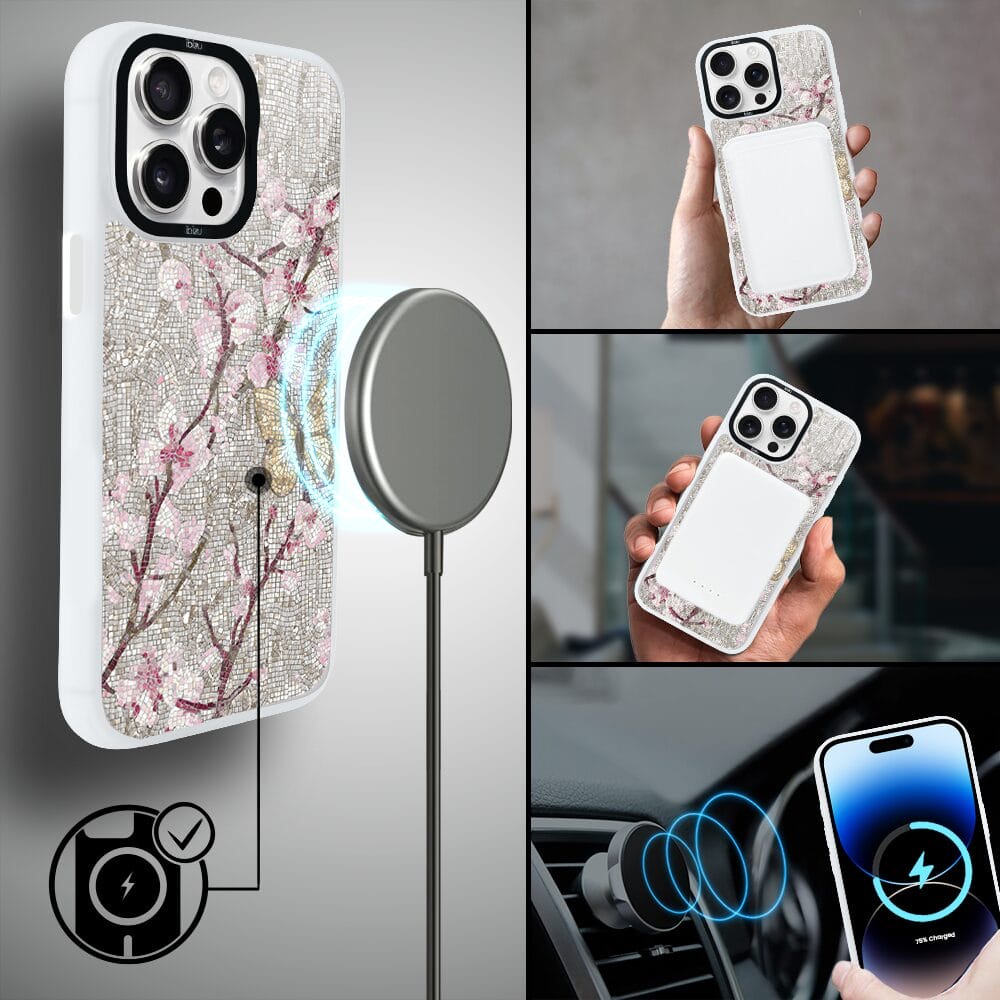 Etui do iPhone 14 Pro IBIZU DropGuard Matt z MagSafe, Modern Classics, Mozaika kwitnącej wiśni