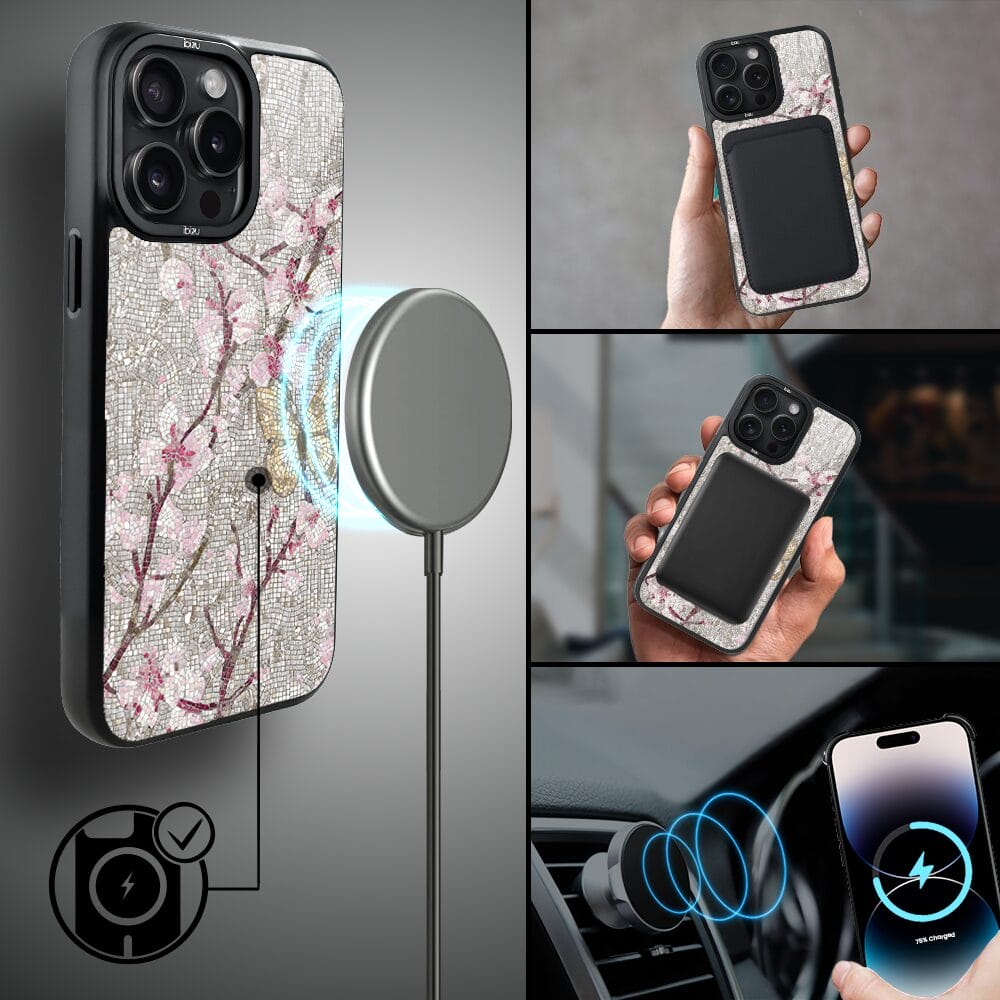 Etui do iPhone 14 Pro IBIZU DropGuard Matt z MagSafe, Modern Classics, Mozaika kwitnącej wiśni