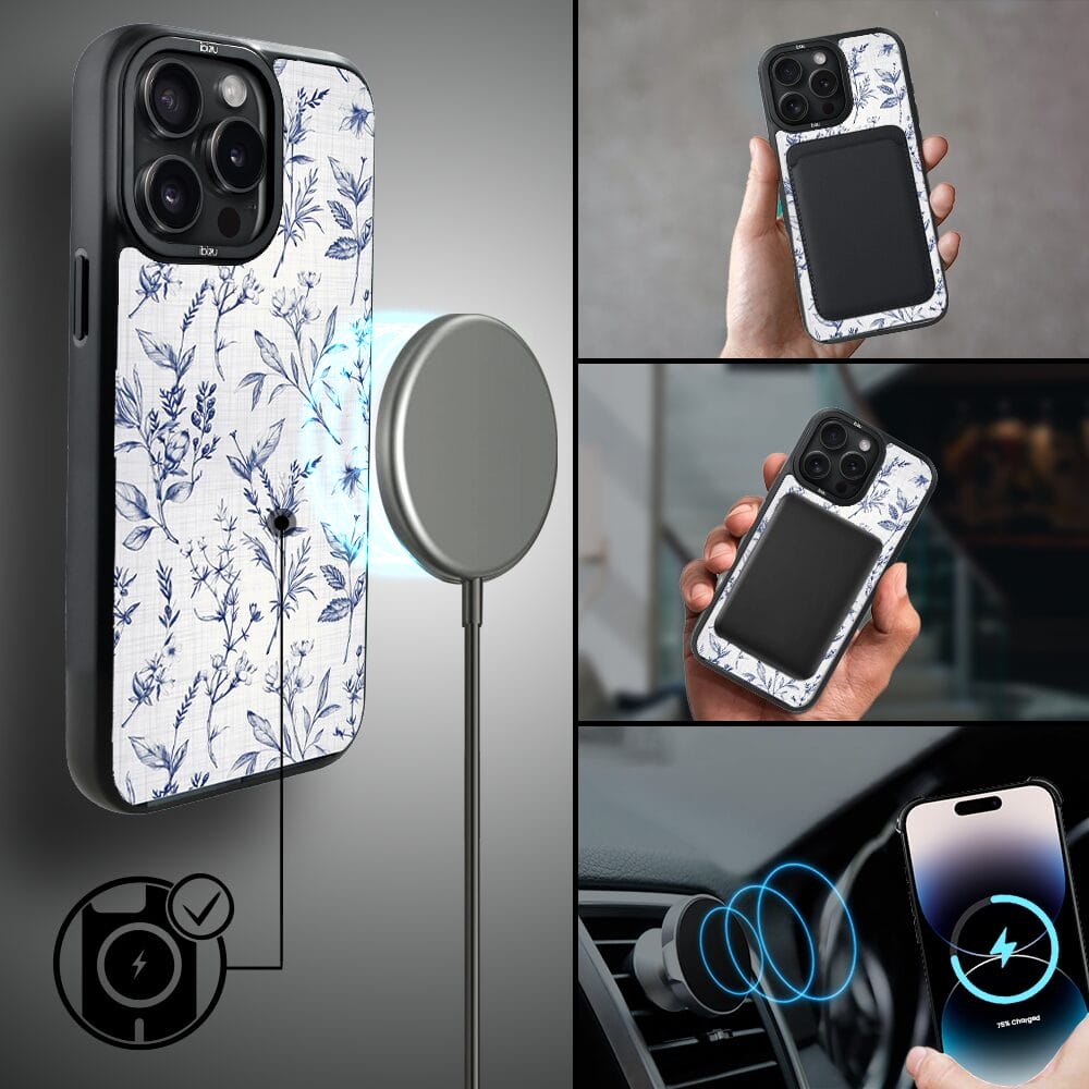 Etui do iPhone 14 Pro IBIZU DropGuard Matt z MagSafe, Pastel Bloom, Lazurowe szepty