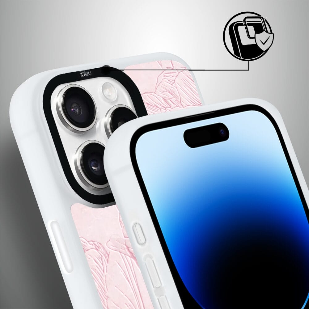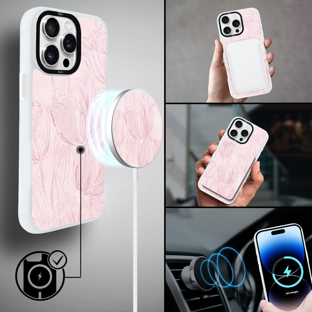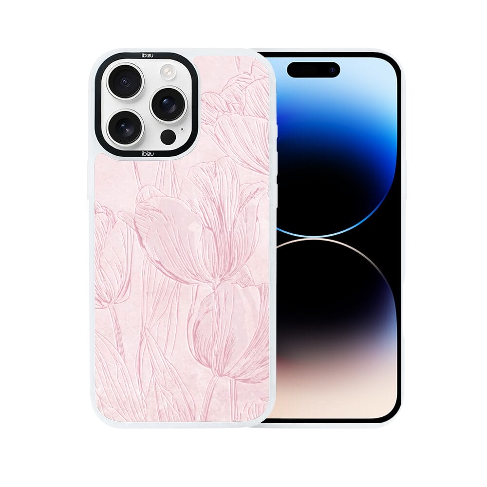 Etui do iPhone 14 Pro IBIZU DropGuard Matt z MagSafe, Relief Garden, Tulipanowy fresk, białe
