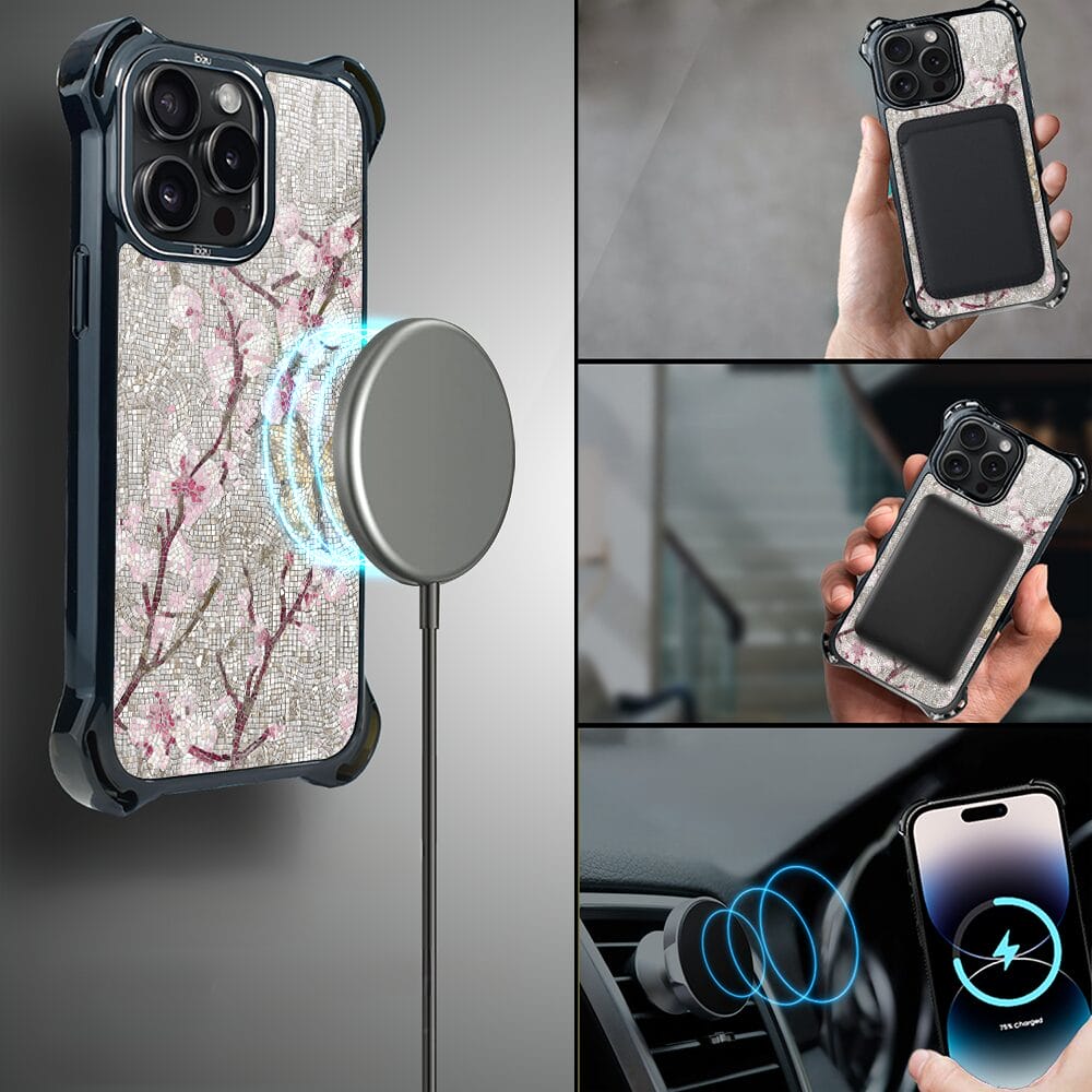 Etui do iPhone 14 Pro IBIZU DropGuard Ultra z MagSafe, Modern Classics, Mozaika kwitnącej wiśni