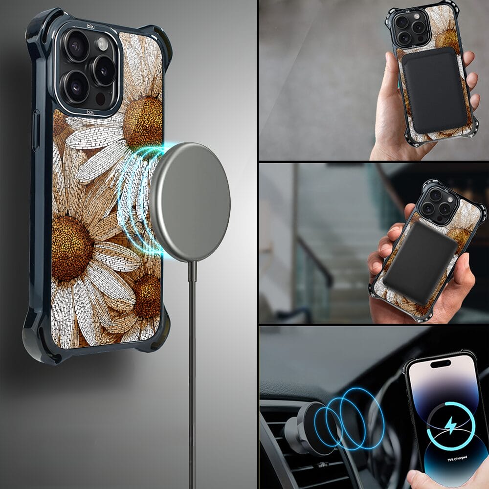 Etui do iPhone 14 Pro IBIZU DropGuard Ultra z MagSafe, Modern Classics, Mozaika rumianków