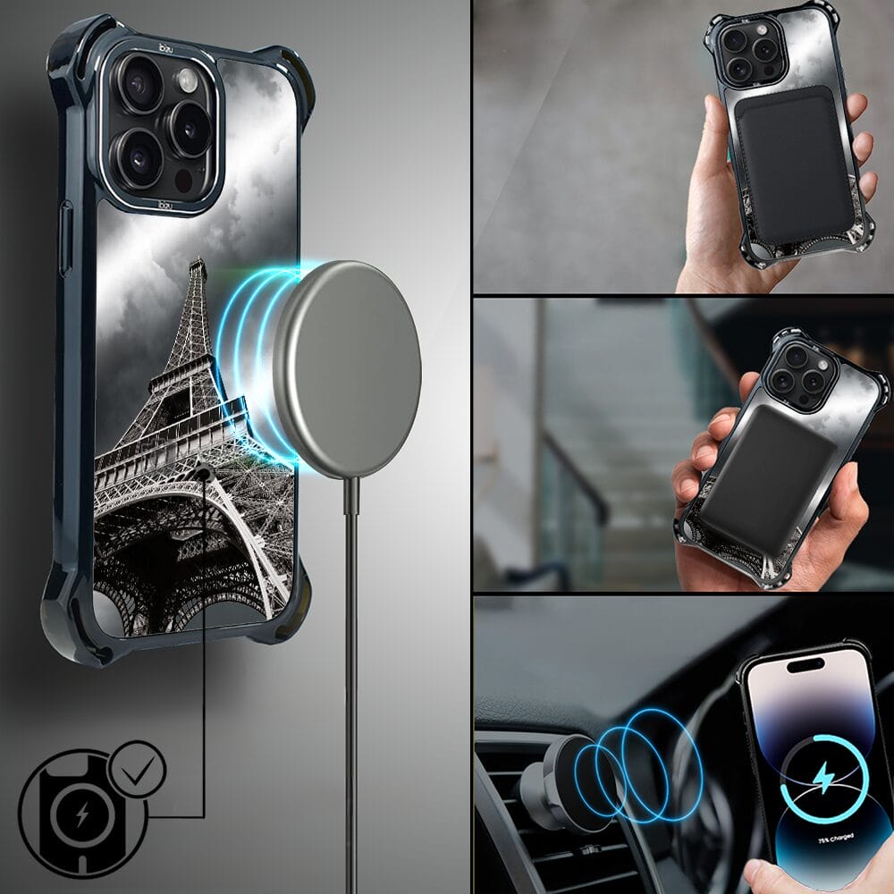 Etui do iPhone 14 Pro IBIZU DropGuard Ultra z MagSafe, Noir City, Wieża Eiffla