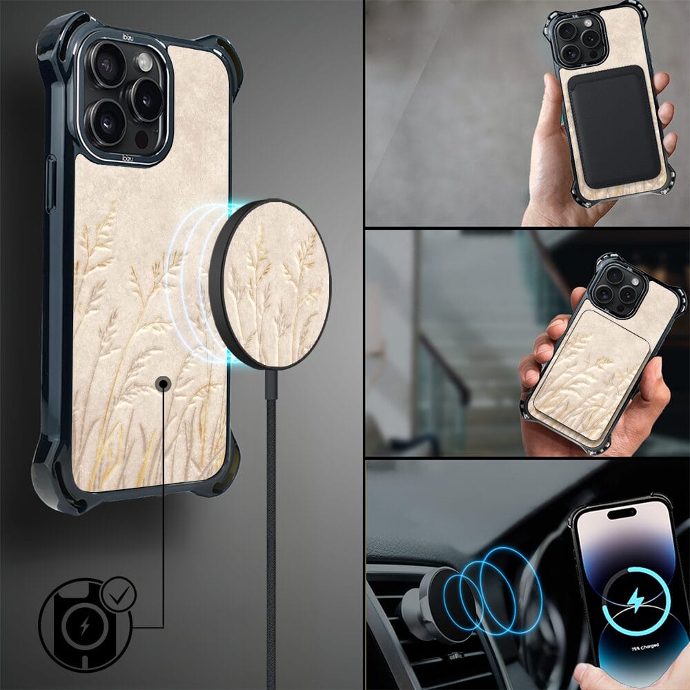 Etui do iPhone 14 Pro IBIZU DropGuard Ultra z MagSafe, Relief Garden, Kłosy z piaskowca