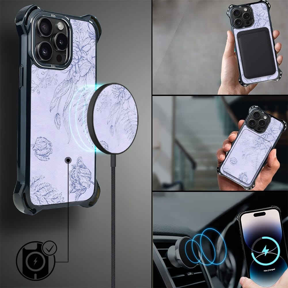 Etui do iPhone 14 Pro IBIZU DropGuard Ultra z MagSafe, Relief Garden, Kwiatowa płaskorzeźba