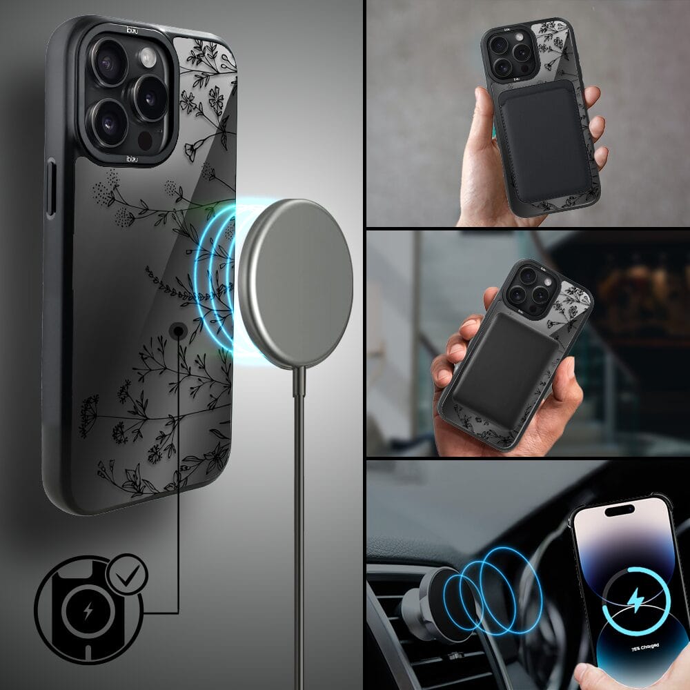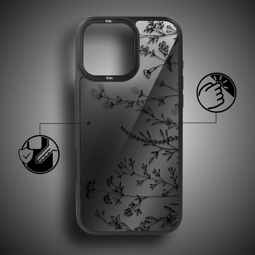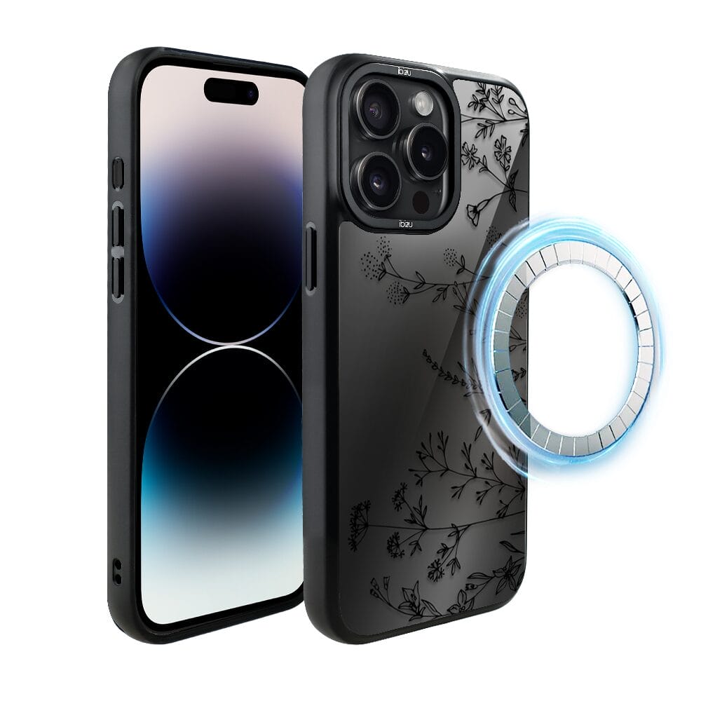 Etui do iPhone 14 Pro Max IBIZU DropGuard Matt z MagSafe, Midnight Mirror, Dotyk kwiatów