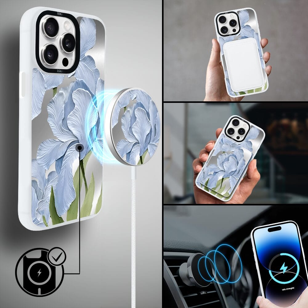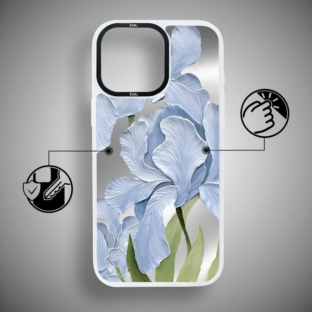 Napisz pierwszą opinię o „Etui do iPhone 14 Pro Max IBIZU DropGuard Matt z MagSafe, Relief Garden, Błękitny irys, białe”