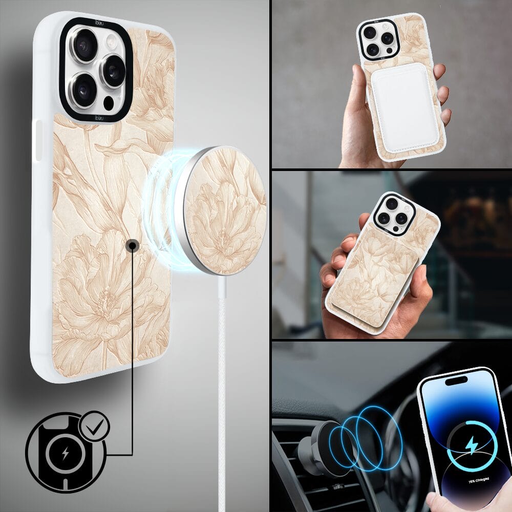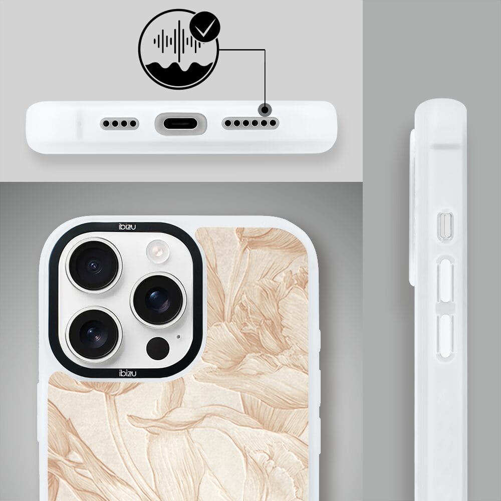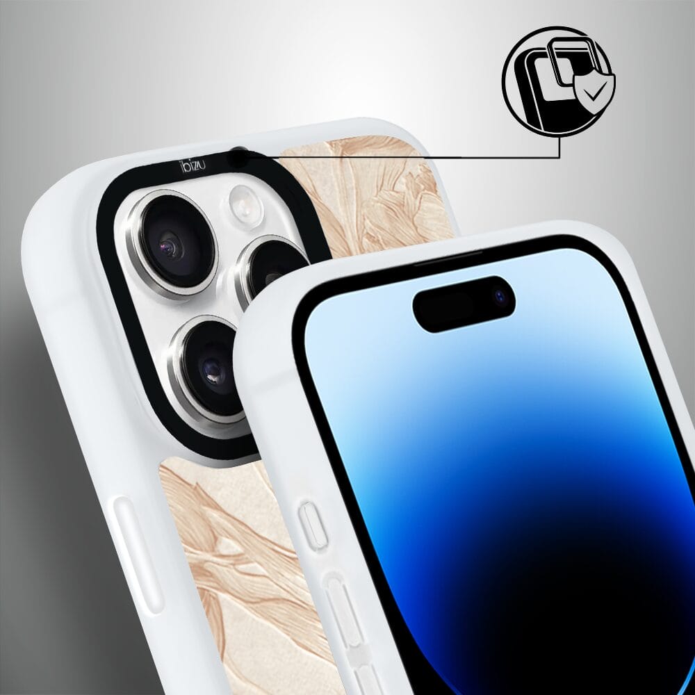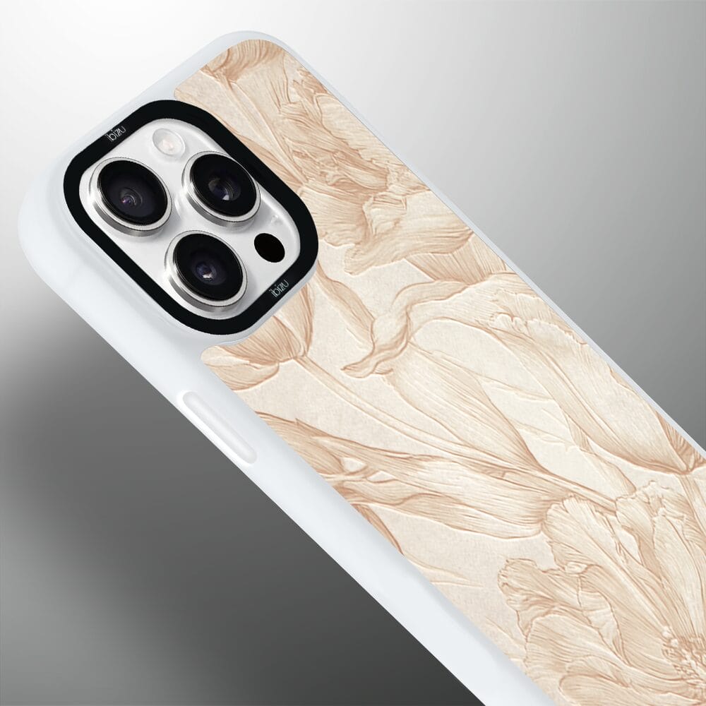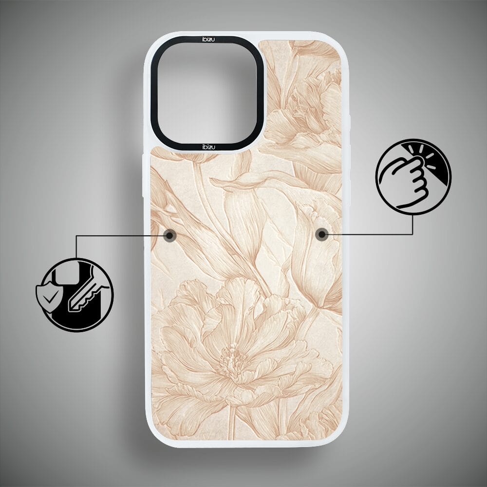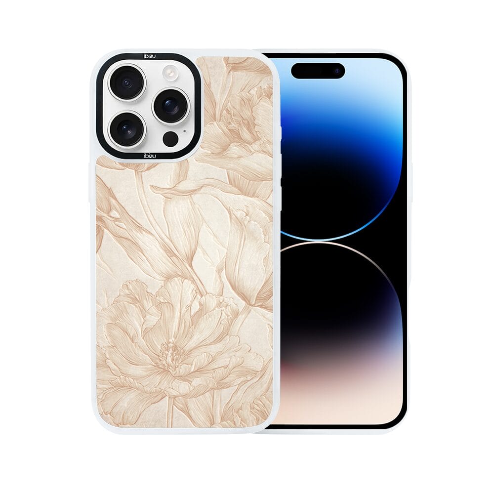 Etui do iPhone 14 Pro Max IBIZU DropGuard Matt z MagSafe, Relief Garden, Botaniczny biskwit, białe