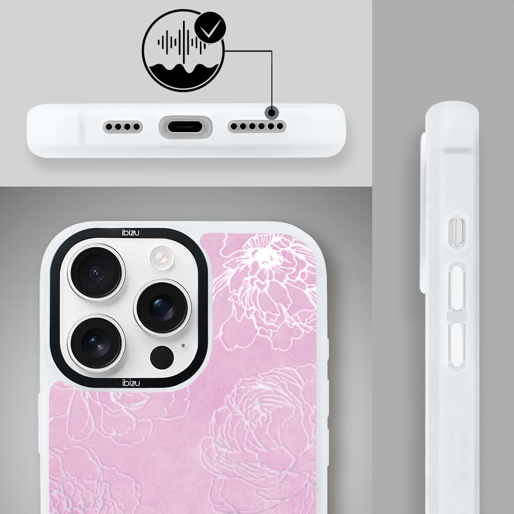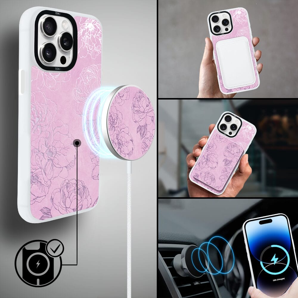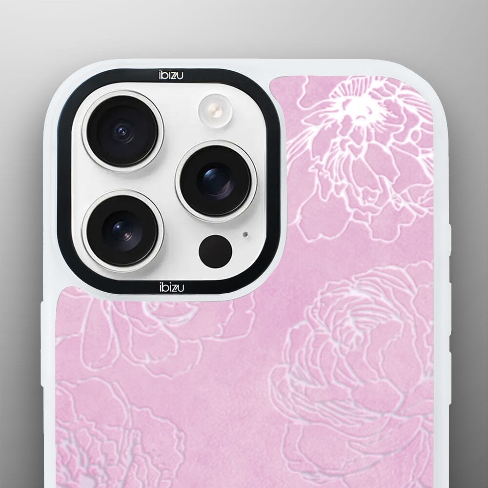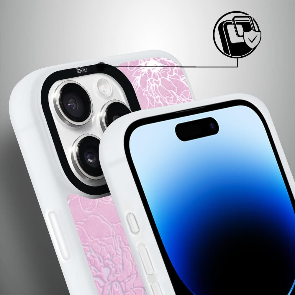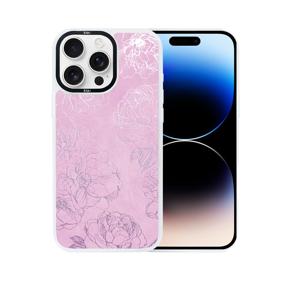 Etui do iPhone 14 Pro Max IBIZU DropGuard Matt z MagSafe, Relief Garden, Różowe piwonie, białe